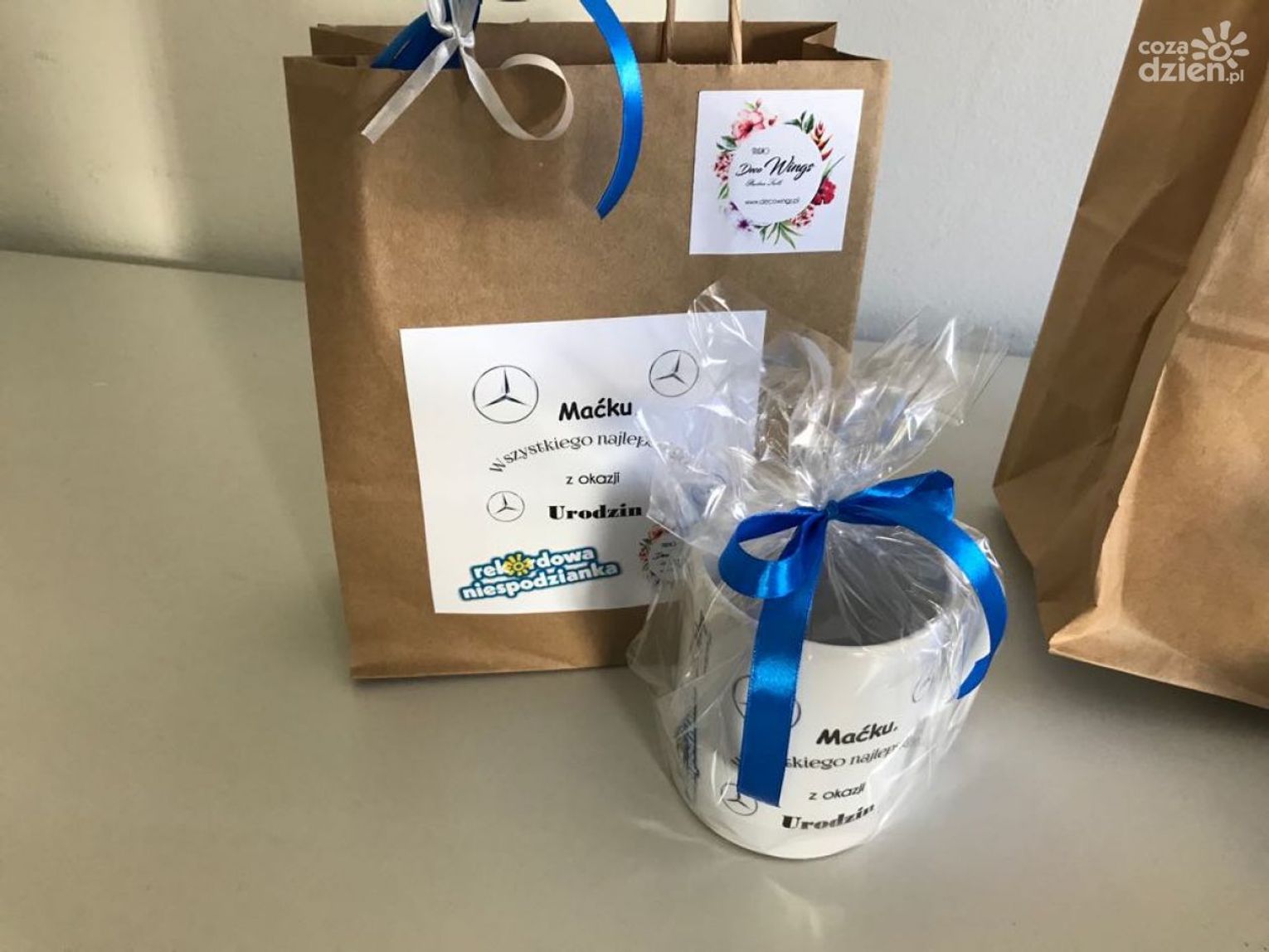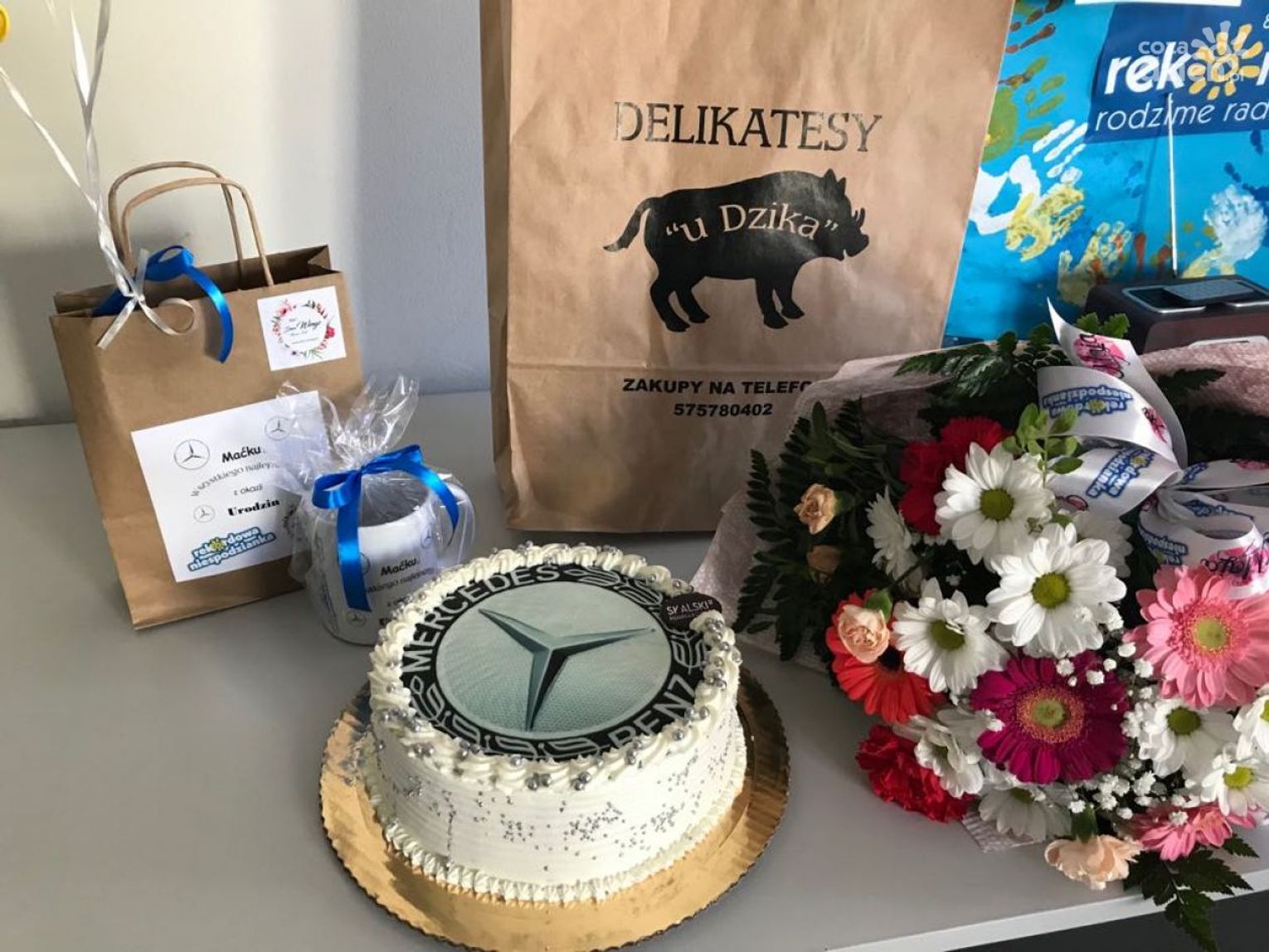 Pan Maciej swoje urodziny obchodził razem z ekipą Rekordowej Niespodzianki. Prezenty, które otrzymał nawiązywały do jego wielkiej pasji czyli motoryzacji. A o nie zadbali niezawodni sponsorzy: Kwiaciarnia MAJA, Delikatesy u Dzika, Piekarnia i Cukiernia Skalski oraz Studio DECO WINGS.