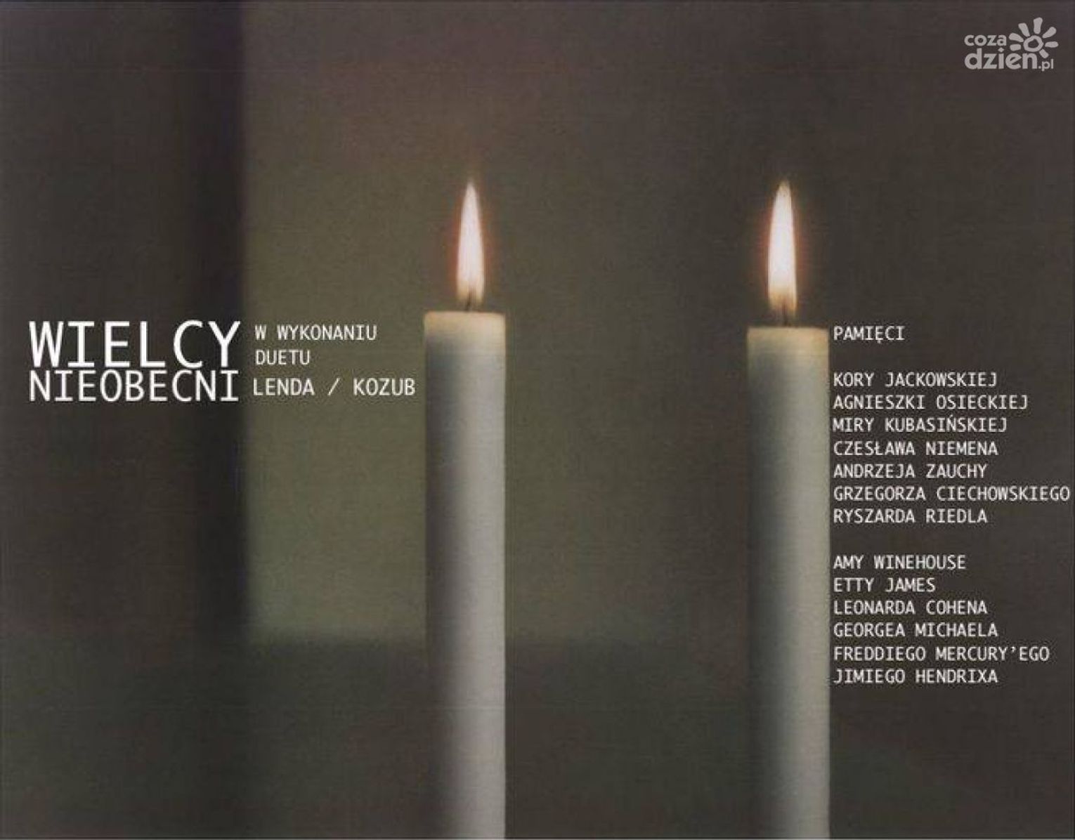 Utwory legendarnych wykonawców: Czesława Niemena, Agnieszki Osieckiej, Miry Kubasińskiej, Andrzeja Zauchy, Ryszarda Riedla, Kory Jackowskiej, Grzegorza Ciechowskiego, Amy Winehouse, Leonarda Cohena, Jimiego Hendrixa, George'a Michaela, czy Freddiego Mercury zabrzmią w akustycznych aranżacjach wokalistki Pauliny Lendy-Kozub oraz gitarzysty Piotra Kozuba, tworzących parę na scenie oraz w życiu prywatnym.