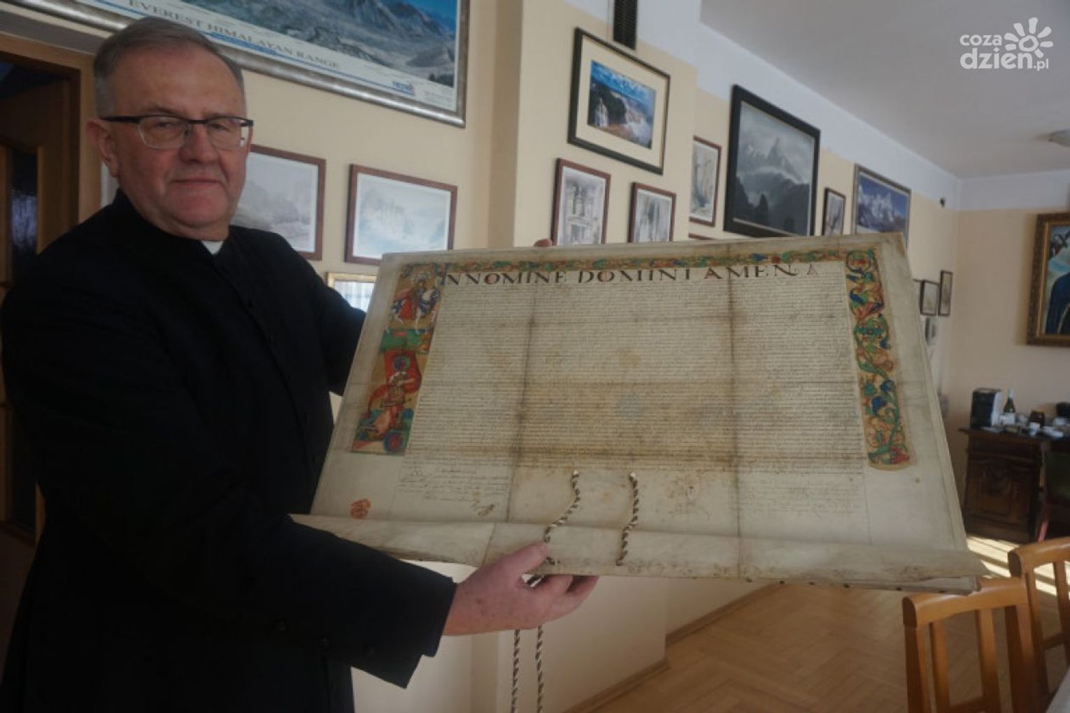 Arkusz, zawierający zapis dokumentu, parafia otrzymała w stanie nienaruszonym. Został bardzo dobrze zabezpieczony, poddawany jest pracom konserwatorskim. Do dzisiaj przechowywany jest w kolegiacie jako jeden z najcenniejszych dokumentów dotyczących naszej świątyni, a jednocześnie źródło historyczne miasta Opatów. Dokument jest ozdobiony miniaturowymi ilustracjami autorstwa Stanisława Samostrzelnika, znanego XVI-wiecznego malarza związanego z najznamienitszymi mecenasami kultury polskiej – ozdabiał m.in. modlitewniki, kroniki, choćby katalog arcybiskupów gnieźnieńskich, biskupów krakowskich, kronikę Jana Długosza. Jego talent przetrwał we freskach katedr, kościołów, jego dziełem są także malowidła w kościele farnym w Szydłowcu.