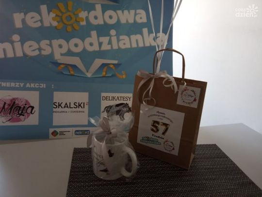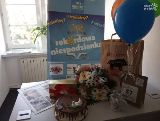 Pan Roman w pracy został zaskoczony przez ekipę Rekordowej Niespodzianki. To było dla niego wielkie zaskoczenie. Ekipie Rekordowej Niespodzianki towarzyszyła rodzina jubilata. Było też dużo prezentów od cudownych sponsorów akcji: Kwiaciarnia MAJA, Delikatesy u Dzika, Piekarnia i Cukiernia Skalski oraz Studio DECO WINGS.