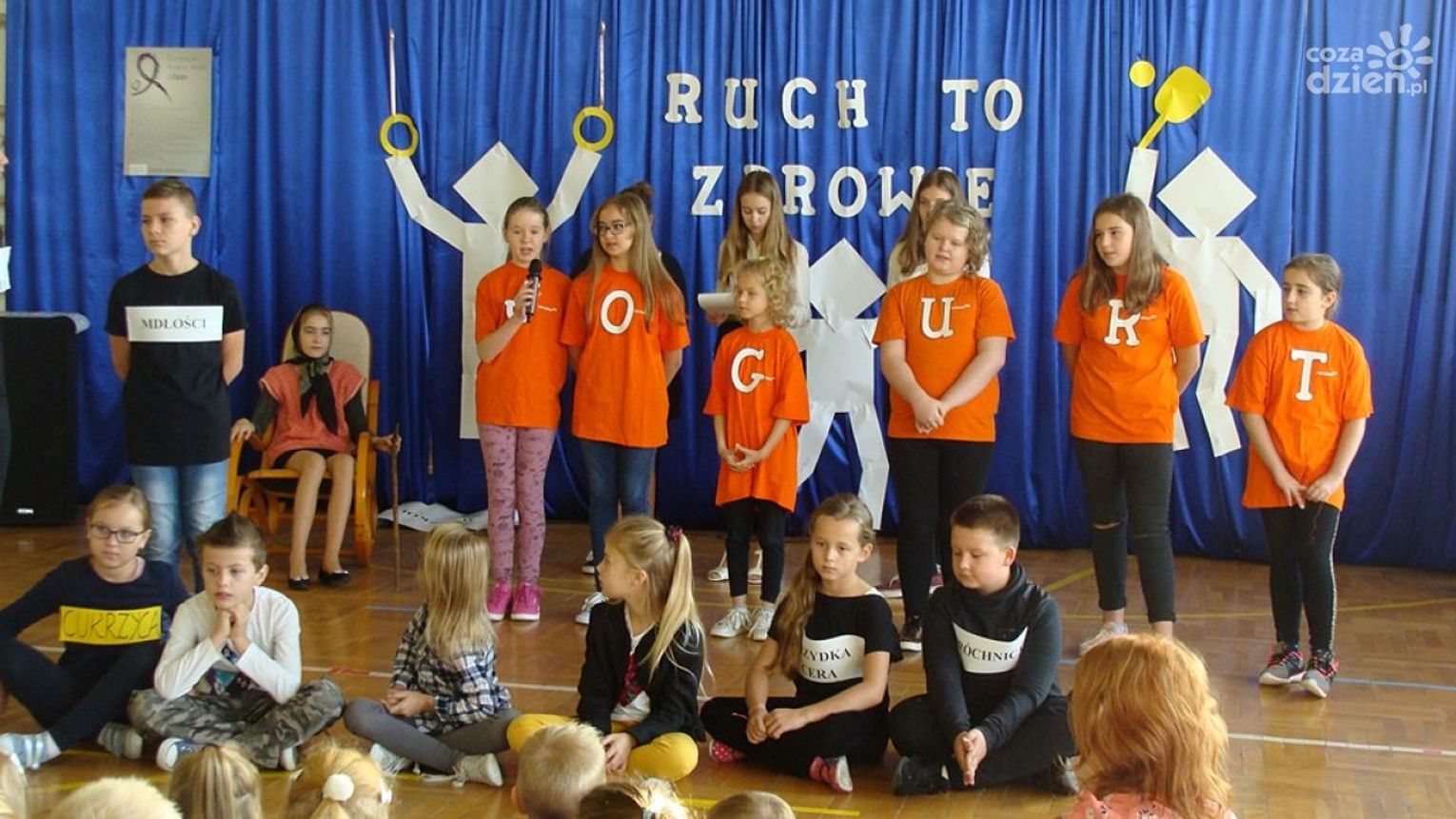 Uczniowie z klasy III i VII wystąpili w przedstawieniu „Ruch to zdrowie". Celem przedstawienia było przybliżenie dzieciom tematyki zdrowotnej – chcąc być zdrowym należy troszczyć się o swoja aktywność i sprawność fizyczną. Nauczyciele wzięli udział w warsztatach onkologicznych i w prezentacji multimedialnej na temat zdrowego stylu życia.