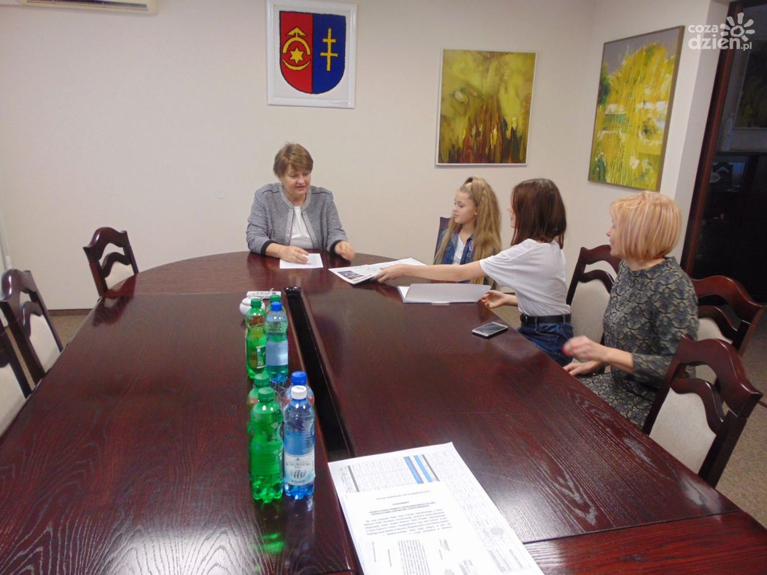 Młode dziennikarki ze Szkoły Podstawowej nr 4 "szlifują warsztat" przy każdej nadarzającej się okazji. Podczas odwiedzin prezydenta Jarosława Górczyńskiego w zeszłym tygodniu w Szkole Podstawowej nr 4 i prezentacji nowych pracowni językowych, przyszłe dziennikarki spotkały się z nim na szkolnym korytarzu i przeprowadziły z nim wywiad. Dziś spotkały się z Marzeną Dębniak. Padały trudne pytania dotyczące codziennej pracy na stanowisku starosty jak i o zainteresowania oraz hobby. Wywiad z panią Marzeną Dębniak zostanie opublikowany w gazetce szkolnej.