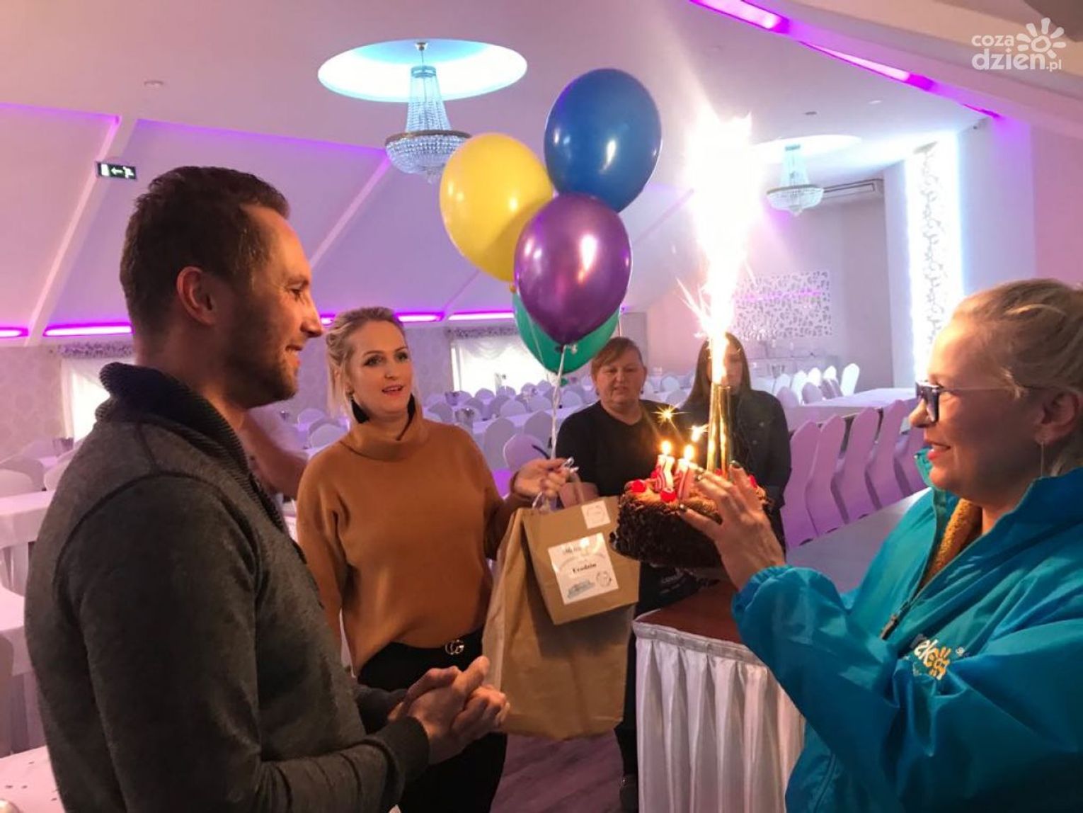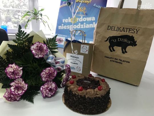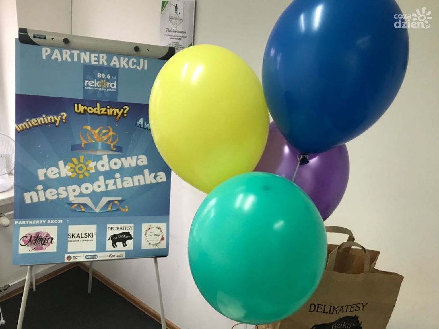 Moc prezentów, uścisków i życzeń powędrowały dziś do pana Mateusza. Niespodziankę w ramach "Rekordowej Niespodzianki" postanowili mu sprawić jego pracownicy. Posłuchajcie koniecznie jak udało nam się zaskoczyć jubilata. Prezenty przygotowali oczywiście niezawodni sponsorzy:Kwiaciarnia MAJA, Delikatesy u Dzika, Piekarnia i Cukiernia Skalski oraz Studio DECO WINGS.