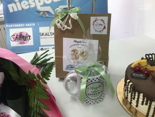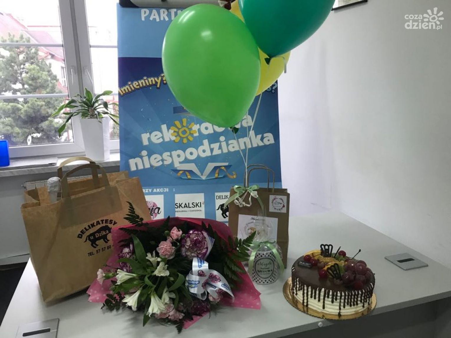 Najlepsza szefowa. Kobieta sukcesu. Ambitna, pracowita i pomocna - tak o swojej szefowej mówią koleżanki z pracy, które chciały w dniu jej urodzin zrobić coś wyjątkowego. My obok tego zgłoszenia nie mogliśmy przejść obojętnie... i dziś razem z Magdaleną świętowaliśmy jej urodziny. O prezenty zadbali sponsorzy Rekordowej Niespodzianki: Kwiaciarnia MAJA, Delikatesy u Dzika, Piekarnia i Cukiernia Skalski oraz Studio DECO WINGS.