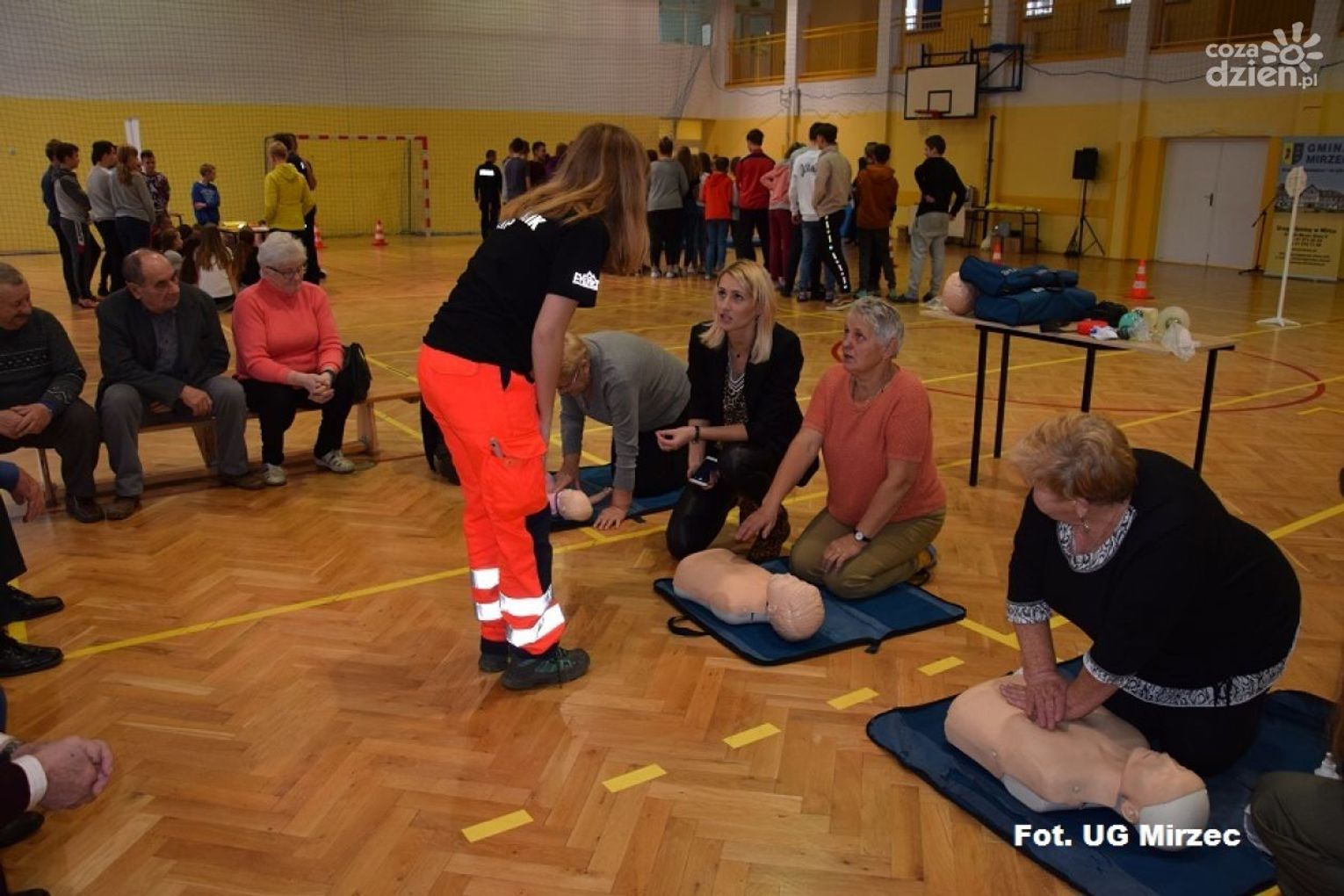 Szkolenie "Bezpieczeństwo w ruchu drogowym" odbyło się w sali gimnastycznej w szkole oraz w Remizie Ochotniczej Straży Pożarnej w Mircu. Prowadzili je członkowie Harcerskiej Grupy Ratowniczej, strażacy z Ochotniczej Straży Pożarnej, policjanci z Komendy Powiatowej Policji w Starachowicach oraz Posterunku Policji w Mircu.