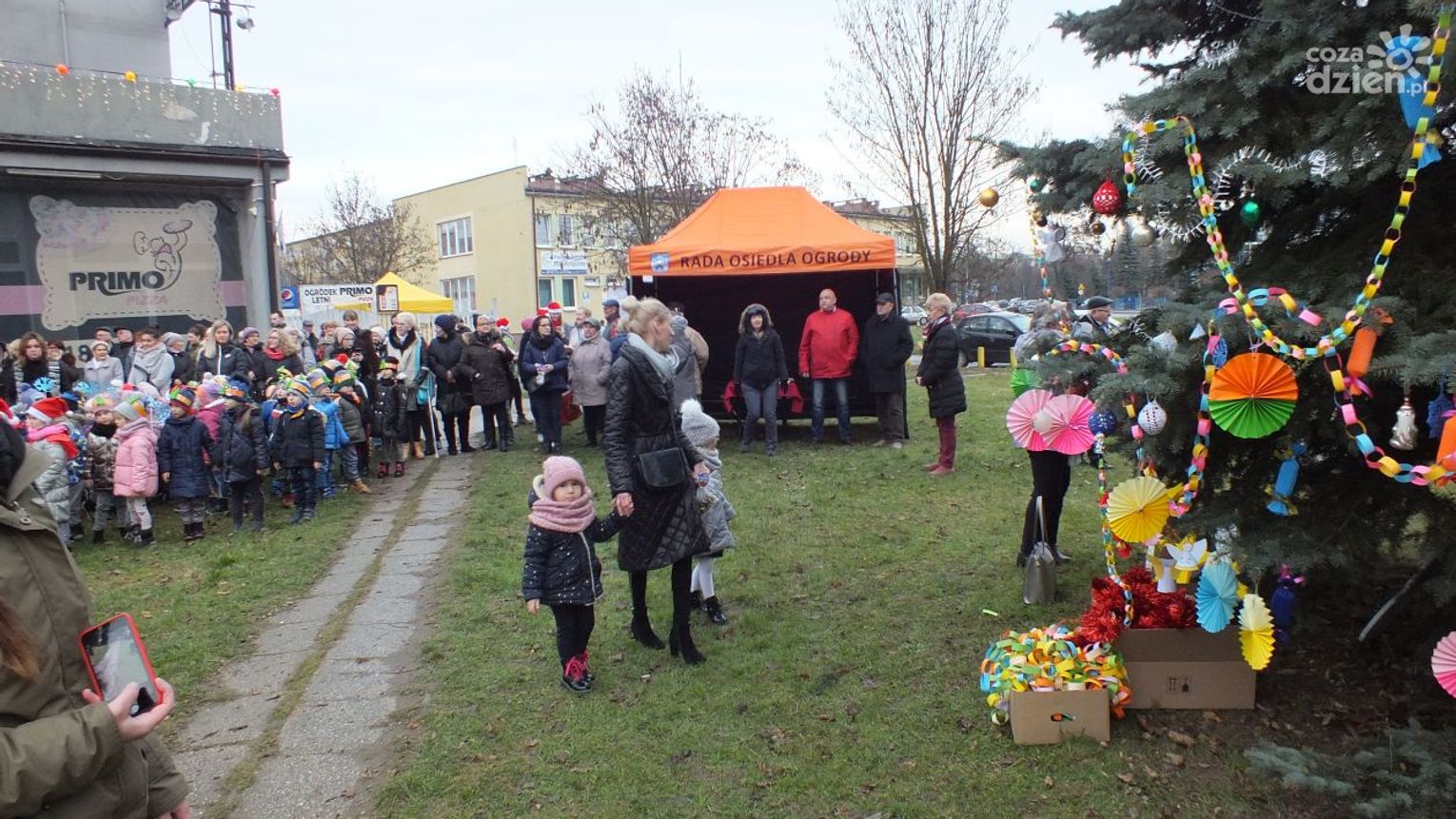 Fundacja Rozwoju Regionalnego EduBałt wyszła z inicjatywą zorganizowania wieczorku wigilijnego. Pomysł szybko podchwyciła Lokalna Grupa Działania "Krzemienny Krąg", dołączyła Rada Osiedla Ogrody, dołączyły też przedszkola i szkoły działające na terenie osiedla, a także Ostrowieckie Towarzystwo Budownictwa Społecznego oraz restauracja "Primo". I tak wspólnymi siłami zorganizowali dzisiejsze wydarzenie "Magia Wieczoru Wigilijnego". Głównym punktem spotkania było wspólne ubieranie pięknej, kilku metrowej choinki.