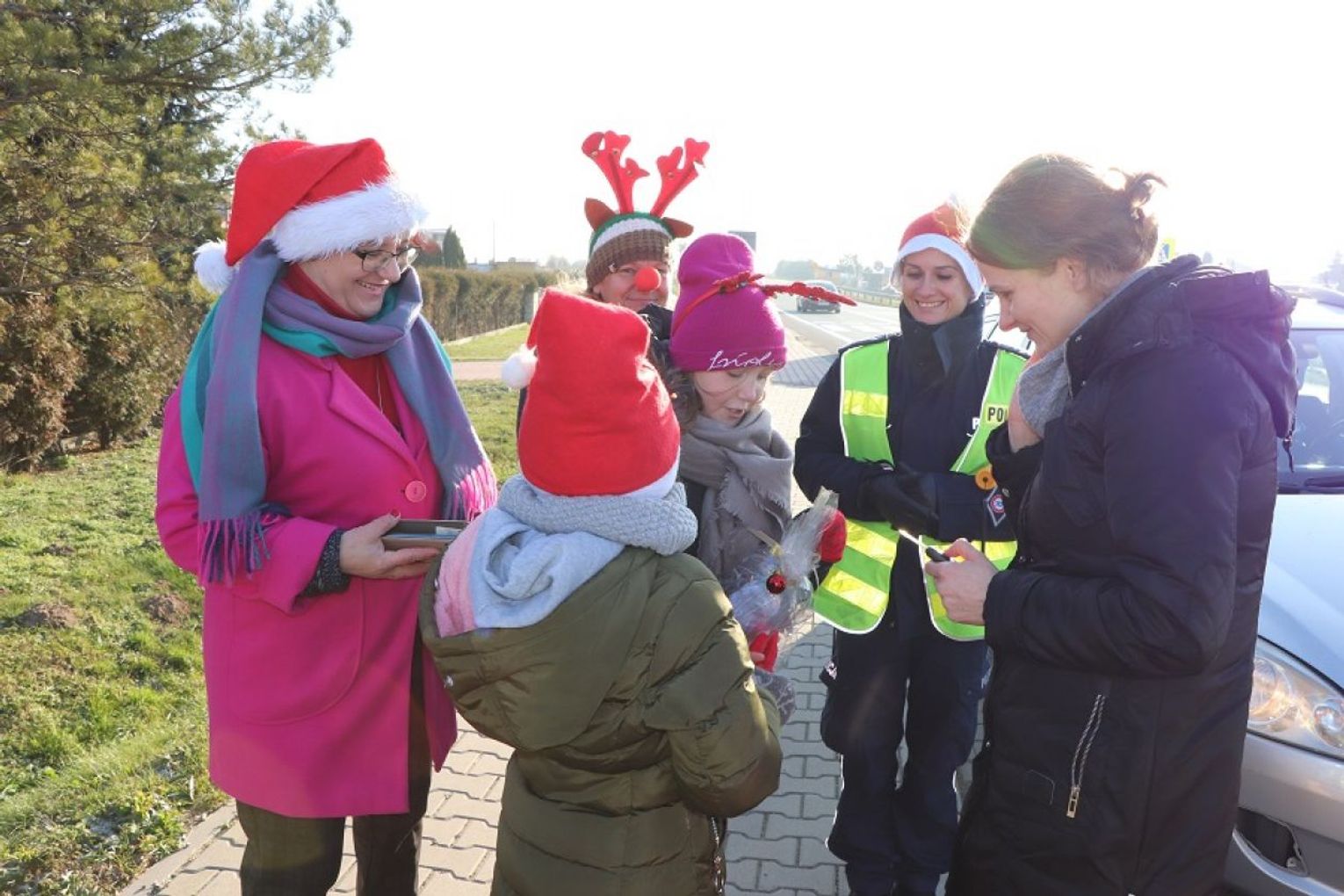 Nietypowe patole prowadziły dziś kontrole kierowców na krajowej "dziewiątce" w Jacentowie. Mundurowym towarzyszyli uczniowie ze Szkoły Podstawowej w Sadowiu. Dzieci, w nagrodę za wzorową postawę za kierownicą nagradzały kontrolowanych świątecznym upominkiem, a za drobne przewinienia wręczały rózgę.
