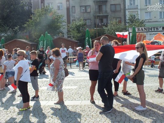 Z inicjatywy Stowarzyszenia Ostrowieccy Patrioci, „Strzelców” i harcerzy już po raz czwarty w centralnym placu miasta odbył się patriotyczny happening. Mimo lejącego się z nieba żaru, chętnych do upamiętnienia w ten sposób bohaterów 63-dniowej, heroicznej walki o Warszawę było bardzo wielu. W Rynku stawili się przede wszystkim młodzi ludzie, całe rodziny z dziećmi, nie zabrakło też przedstawicieli władz. Oddając hołd powstańcom warszawskim, licznie przybyli utworzyli „żywy” znak Polski Walczącej, który gotowy był tuż przed godziną „W”. Punktualnie o 17 zawyły syreny i wystrzelono race. Po minucie ciszy, odśpiewano hymn narodowy, zabrzmiały też okrzyki, m.in. „Cześć i chwała bohaterom!”.