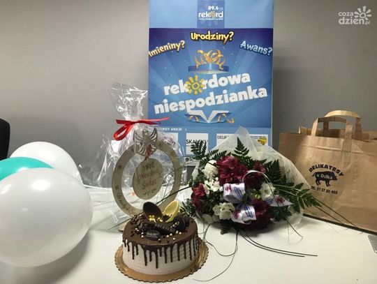 Pan Waldemar w dniu swoich urodzin, aż zaniemówił. Wszystko dlatego, że ten dzień umilili mu bliscy, znajomi z pracy i ekipa Rekordowej Niespodzianki. Było dużo życzeń i moc prezentów, o które zadbali wyjątkowi sponsorzy akcji: Kwiaciarnia MAJA, Delikatesy u Dzika, Piekarnia i Cukiernia Skalski oraz Glass and Graphics.