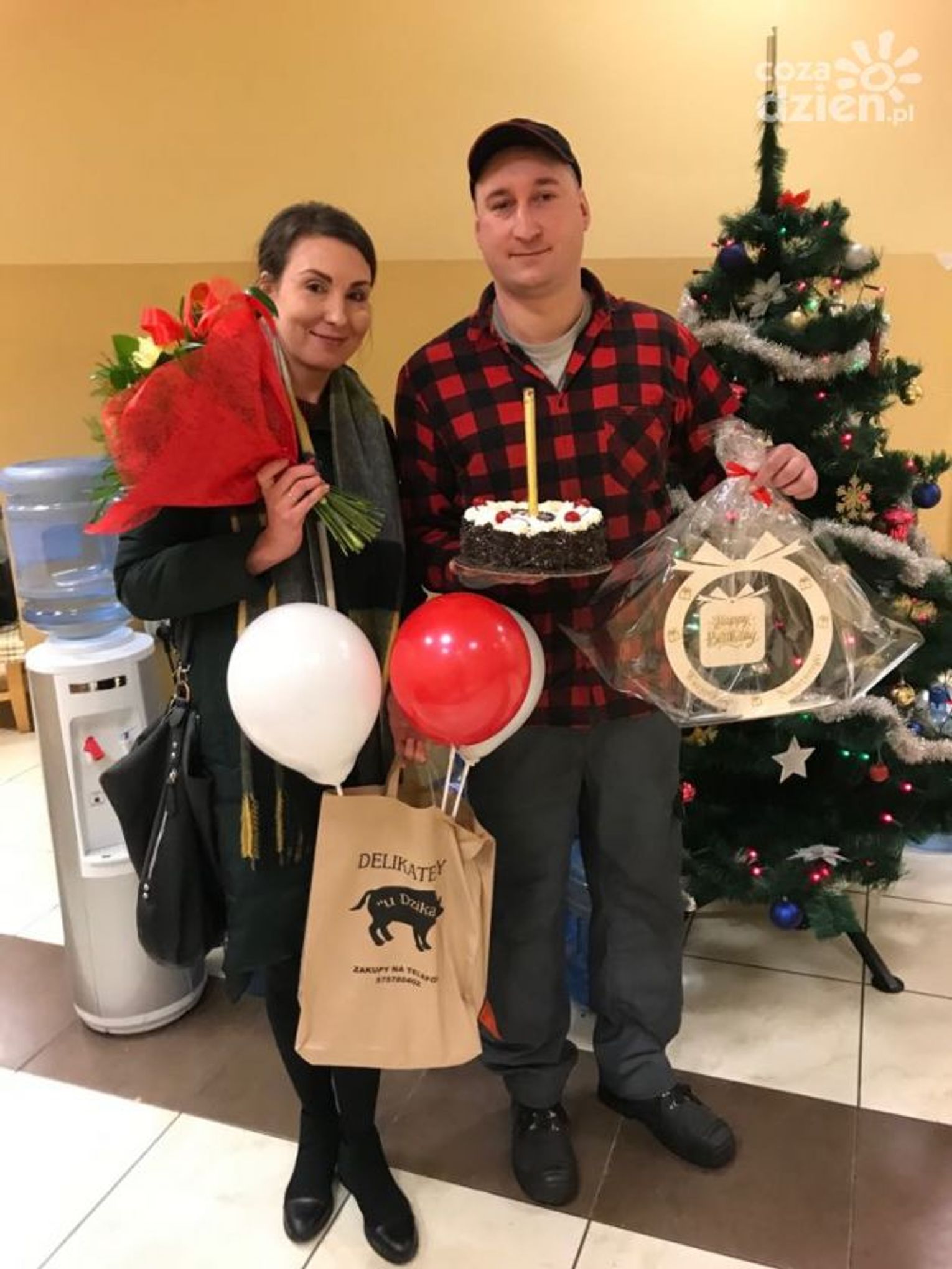 31 grudnia Sylwester ma aż 3 powody do świętowania. Dziś są jego urodziny, imieniny i oczywiście żegna stary, a wita nowy rok. Aby ten dzień był wyjątkowy i aby zapamiętał tegoroczne urodziny na długo zadbała jego narzeczona Klaudia, która zgłosiła go do Rekordowej Niespodzianki. O moc prezentów zadbali natomiast niezastąpieni sponsorzy akcji: Kwiaciarnia MAJA, Delikatesy u Dzika, Piekarnia i Cukiernia Skalski oraz Glass and Graphics.