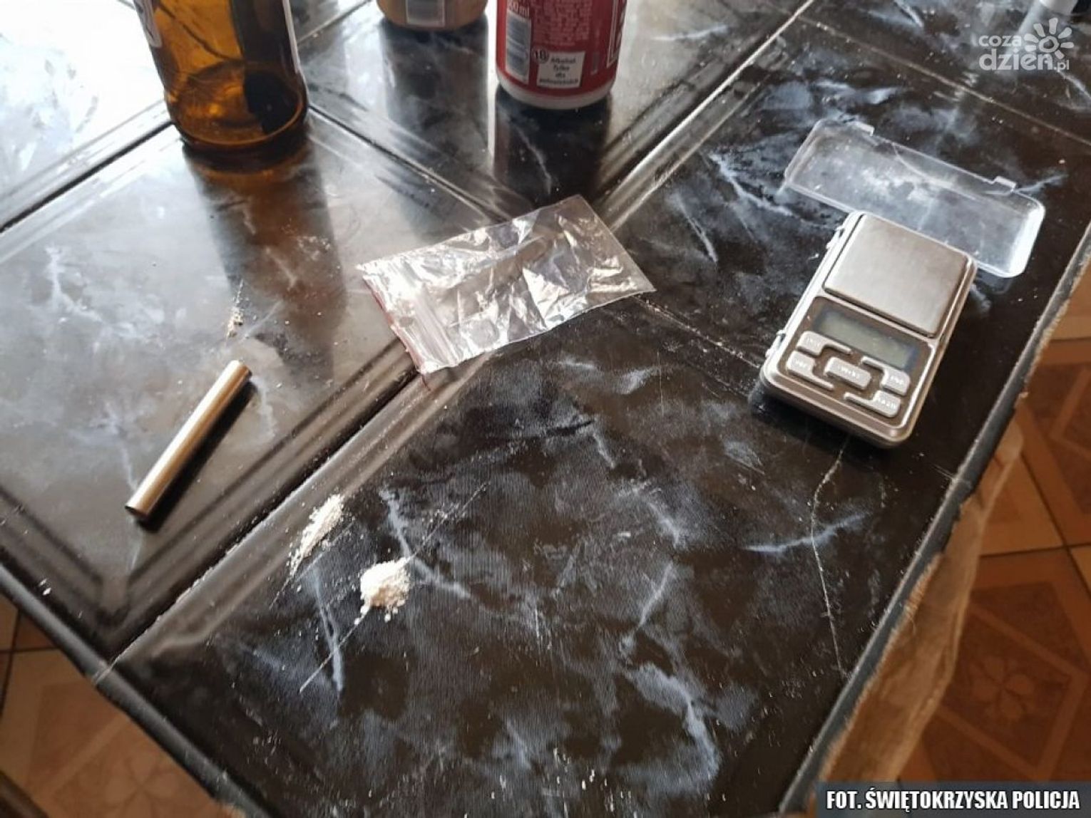 Policjanci Ogniwa Patrolowo-Interwencyjnego z opatowskiej komendy zatrzymali do kontroli drogowej osobowego mercedesa. Autem podróżowało dwóch mężczyzn. W czasie kontroli okazało się, że siedzący za kierownicą auta 47-latek nie posiada uprawnień do kierowania, a jego nerwowe zachowanie i siedzącego obok 27-letniego pasażera wzbudziło podejrzenia mundurowych. Policjanci postanowili sprawdzić samochód i jak się okazało była to słuszna decyzja. W trakcie kontroli mundurowi znaleźli plastikowe pudełko i torebkę foliową, a w nich 25 gramów białego proszku. Wstępne badanie wykazało, że jest to amfetamina. Obaj mężczyźni zostali zatrzymani i trafili do policyjnego aresztu. Wcześniej jednak kierującemu pobrana została krew do badań, w celu ustalenia, czy nie kierował podjazdem pod wpływem środków odurzających. Dalsze czynności opatowskich kryminalnych doprowadziły do miejscu zamieszkania 27-latka. Tam mundurowi znaleźli amfetaminę i wagę elektroniczną. Dodatkowo policjanci znaleźli siedem sadzonek konopi najprawdopodobniej innych niż włókniste. Jak się okazało to nie koniec problemów 27-latka, gdyż w trakcie wykonywanych czynności funkcjonariusze ujawnili nielegalne podłączenie energii elektrycznej. Mężczyźni zostali przesłuchani i usłyszeli zarzuty - 47-latek posiadania środków odurzających, natomiast 27-latek z powiatu starachowickiego zarzut posiadania narkotyków, uprawy konopi jak i udzielania zakazanych środków innym osobom. Mężczyźni spotkali się już z prokuratorem, który zastosował wobec nich środki zapobiegawcze.
