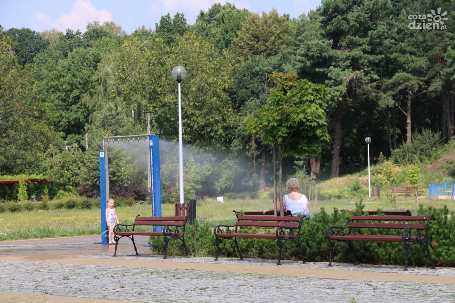 Starachowiczanie bronią się przed upałami chętnie chłodząc się przy rozstawionych na terenie miasta kurtynach wodnych. Jedna z kurtyn ustawiona została na placu pod skałkami przy Al. Armii Krajowej, druga na płycie Rynku, w dni targowe jedna z kurtyn stanie na miejskim placu targowym.