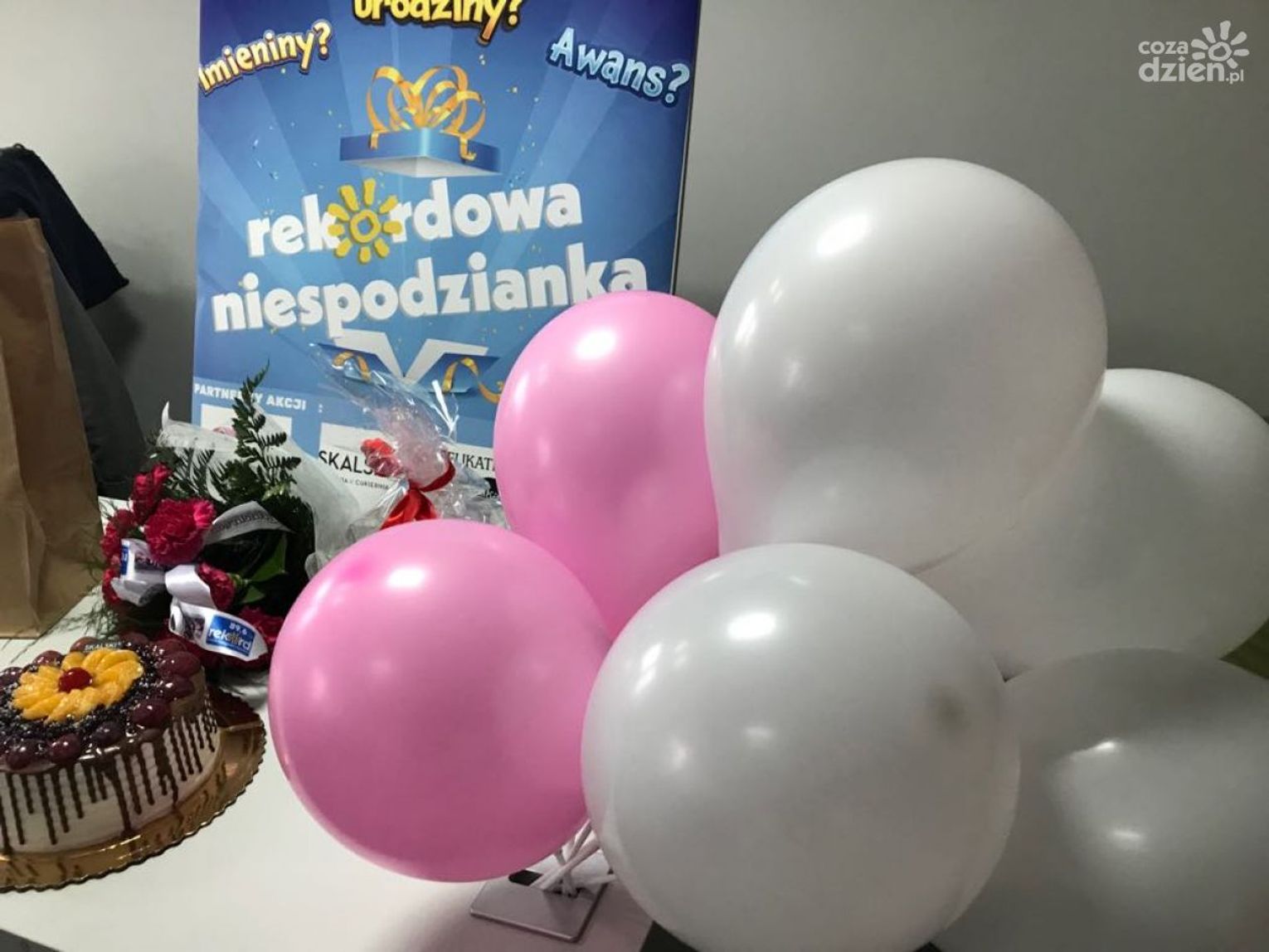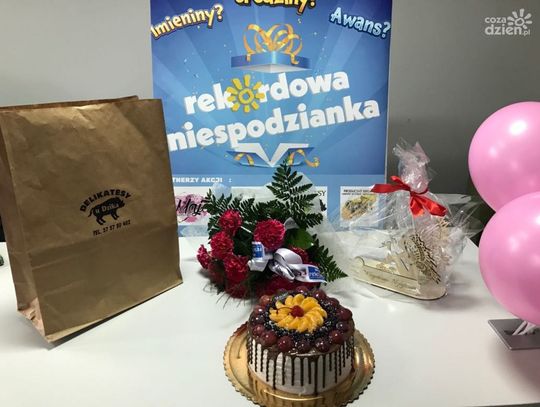Małgorzata jest miłą, ciepłą i bardzo pomocną osobą - tak mówią o niej przyjaciele, którzy zgłosili ją do Rekordowej Niespodzianki. Pani Małgorzata była bardzo zaskoczona, wzruszona i szczęśliwa. Moc prezentów na tą akcję podarowali sponsorzy Kwiaciarnia MAJA, Delikatesy u Dzika, Piekarnia i Cukiernia Skalski oraz Glass and Graphics.