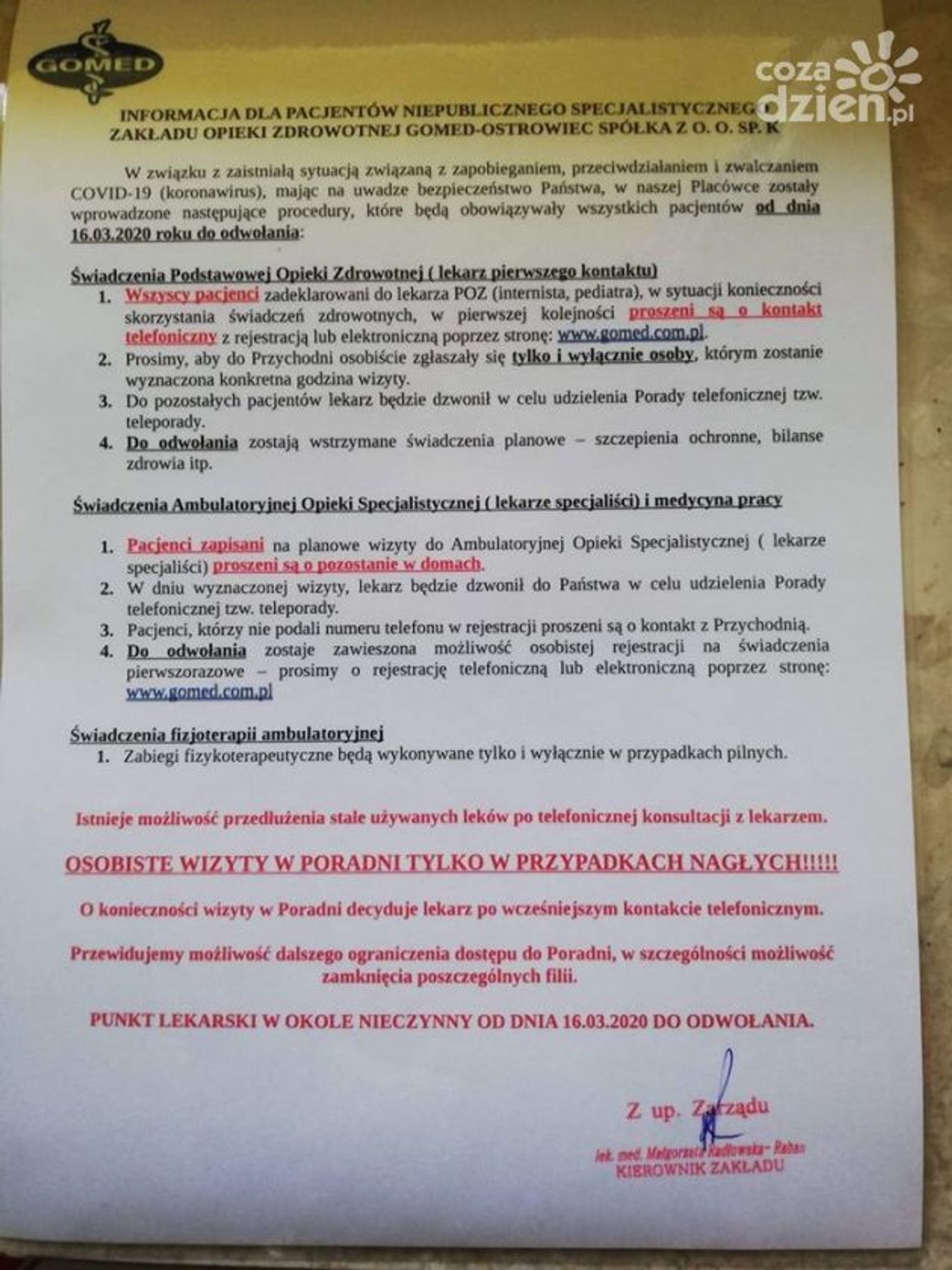 Dla dobra pacjentów i personelu, ośrodki zdrowia działające na terenie gminy Bałtów wprowadzają specjalne procedury. Od jutra (poniedziałek, 15 marca) osobiście pacjenci będą przyjmowani tylko w przypadkach nagłych, wyłącznie w Bałtowie.