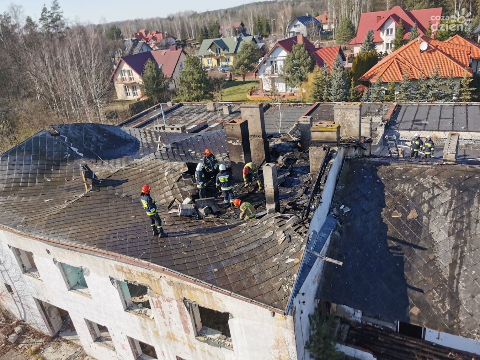 - Akcja była skomplikowana, ponieważ dach był z więźbą drewnianą pokrytą eternitem i papą, a to są materiały sprzyjające do rozwoju pożaru. Akcja trwała prawie 3 godziny. Strażacy musieli robić wycięcia w dachu aby wprowadzać trąby gaśnicze, dlatego akcja cały czas odbywała się na wysokości. Na szczęście nikt nie został poszkodowany, choć istniało takie zagrożenie, bowiem dostaliśmy od osób postronnych informację, że tam często przebywa osoba bezdomna. Na szczęście nikogo tam nie było - mówi Barbara Majdak, oficer prasowy ostrowieckich strażaków.