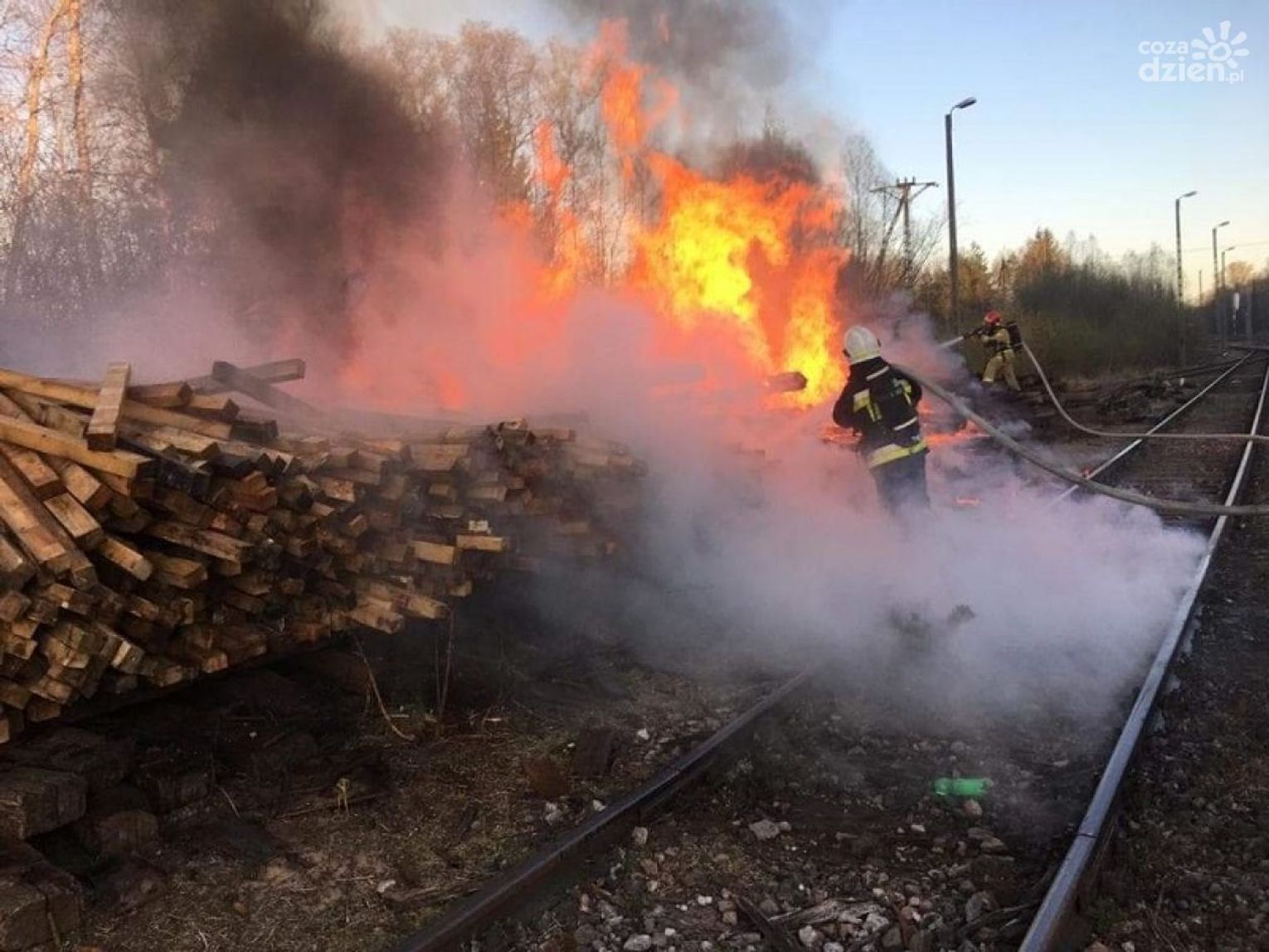 W sobotę, 18 kwietnia przed godziną 6 rano doszło do dużego pożaru podkładów kolejowych przy ul. Kolejowej w Kunowie.