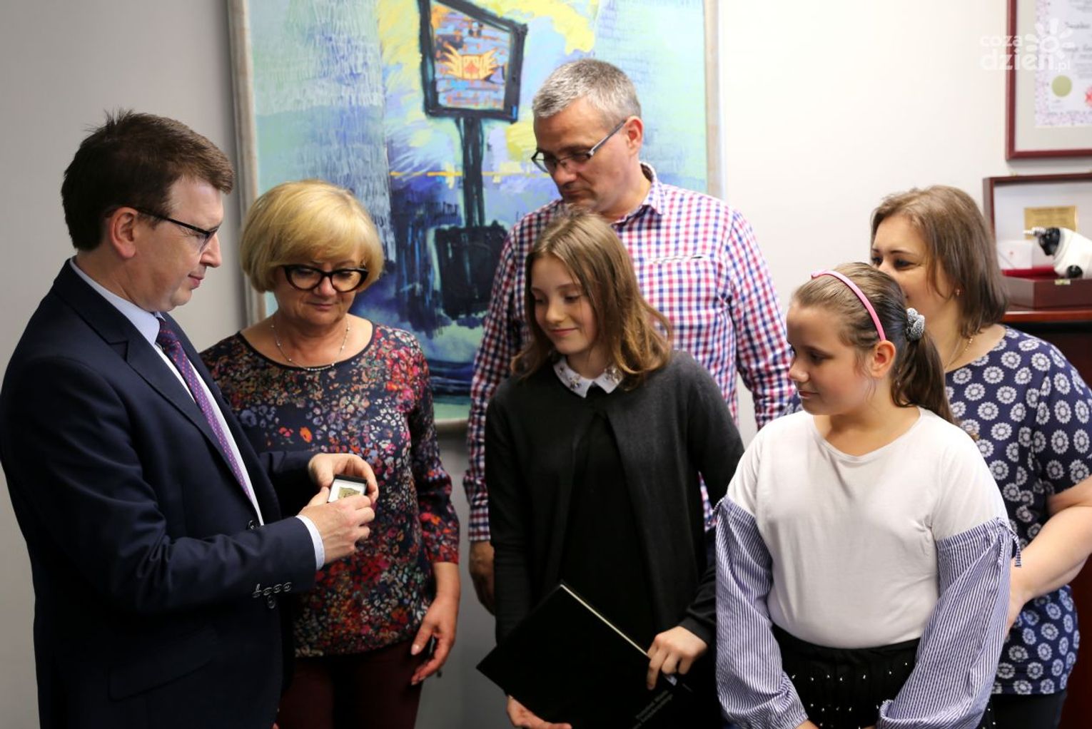 - Dzisiejsza uroczystość to wyjątkowe wydarzenie zarówno dla młodych ludzi, którzy swoją pracą zasłużyli na to szczególne odznaczenie, ale także całych rodzin: rodziców, babć, czy rodzeństwa. Jako gospodarz miasta, podobnie jestem dumny z osiągnięć wyróżnionych "Złotą tarczą" młodych ostrowczan. Cieszę się, że są oni pełni pasji, zapału oraz chęci dzielenia się swoją wiedzą z innymi, a także z ochotą korzystają z przygotowanej przez nas gminnej oferty edukacyjnej oraz kulturalnej i sportowej - przyznał prezydent Jarosław Górczyński. - Wprowadzona w tym roku odznaka "Złotej Tarczy" to nawiązanie do pięknego zwyczaju wyróżniania w ten sposób najlepszych uczniów.