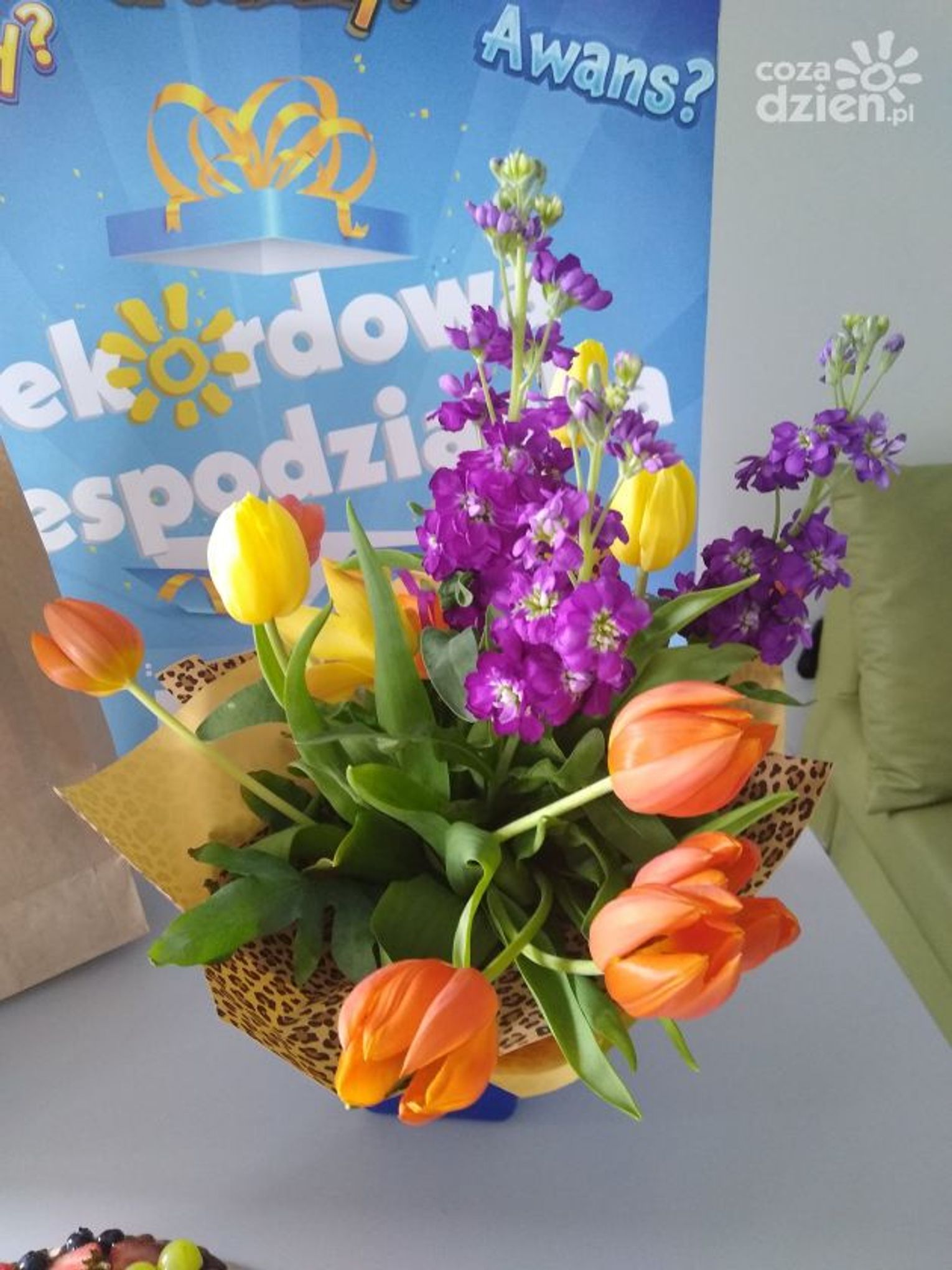 Magda marzyła o wyjątkowych urodzinach oraz o tym, aby odwiedziło ją Radio Rekord. Nie mogliśmy odmówić, a tym samym zawitaliśmy do jej gabinetu z REKORDOWĄ NIESPODZIANKĄ. To był strzał w dziesiątkę!!! Na twarzy Magdy pojawiły się łzy wzruszenia i przepiękny uśmiech. Jeszcze więcej uśmiechu dostarczyły jej prezenty od naszych partnerów: Kwiaciarnia "Na Schodach", Delikatesy "U Dzika", Piekarnia i Cukiernia "Skalski" oraz Agencja Reklamowa "Kreograf".