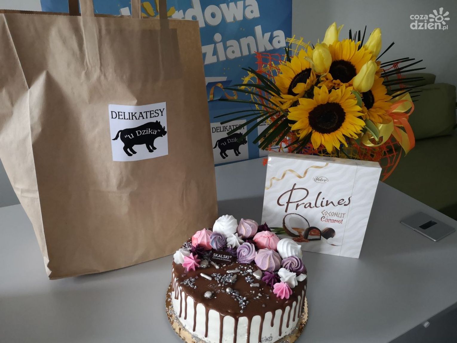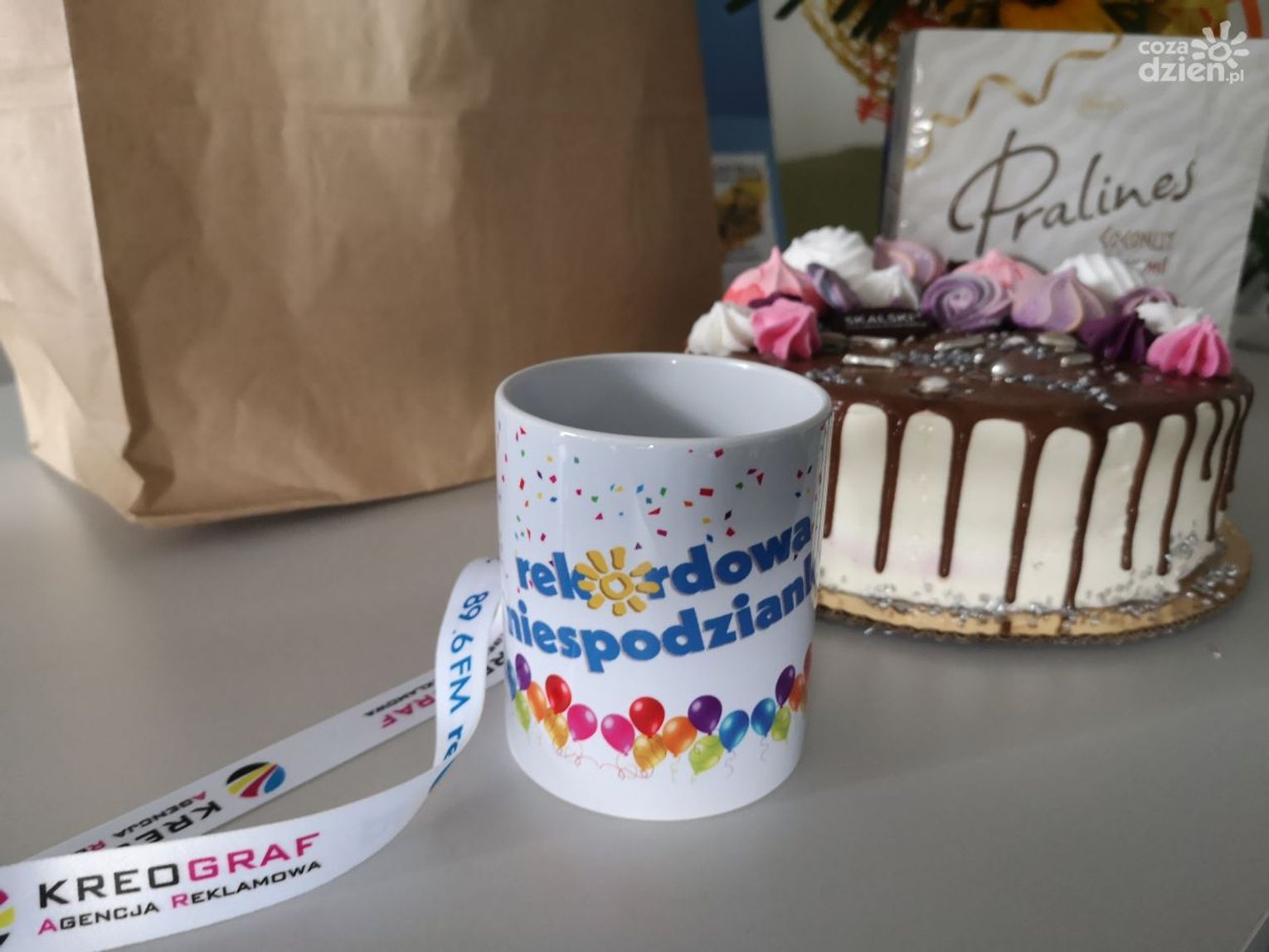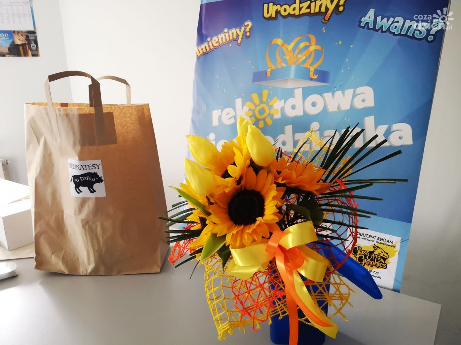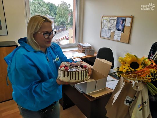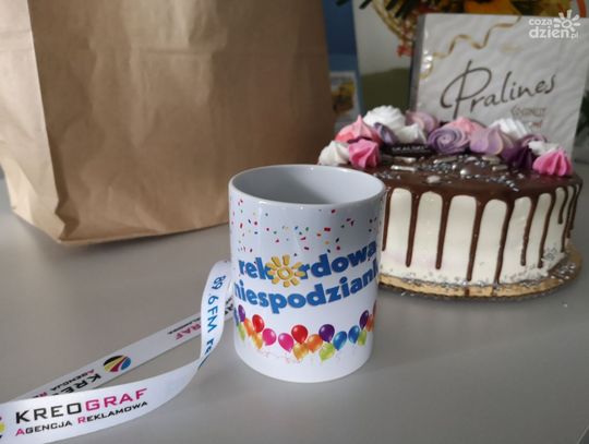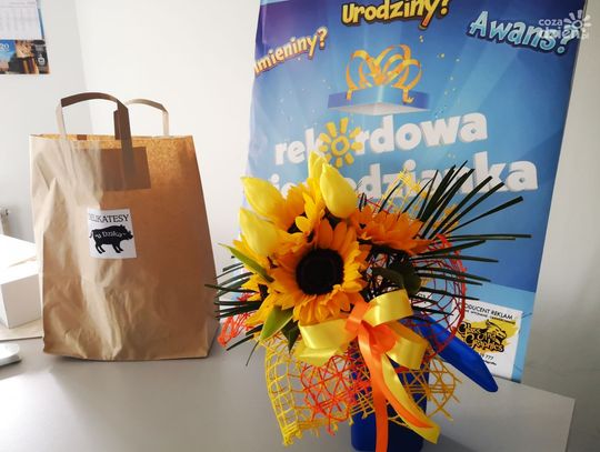 Małgosia z okazji 35 urodzin zasłużyła na wyróżnienie. Pojawiliśmy się w jej miejscu pracy z REKORD-ową Niespodzianką. Zgłosił ją jej szwagier Kamil z rodziną. Koniecznie obejrzyjcie galerię zdjęć, na których widać nasze prezenty od partnerów: Kwiaciarnia "Na Schodach", Delikatesy "U Dzika", Piekarnia i Cukiernia "Skalski" oraz Agencja Reklamowa "Kreograf".