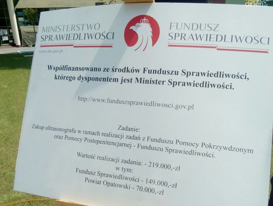 Wartość zakupionego ultrasonografu to 219 tys. zł., z czego pomoc Funduszu Sprawiedliwości to 149 tys. zł. zaś 70 tys. to wkład Powiatu Opatowskiego.