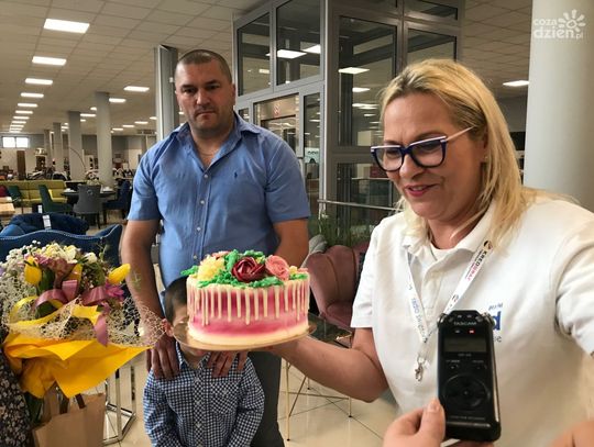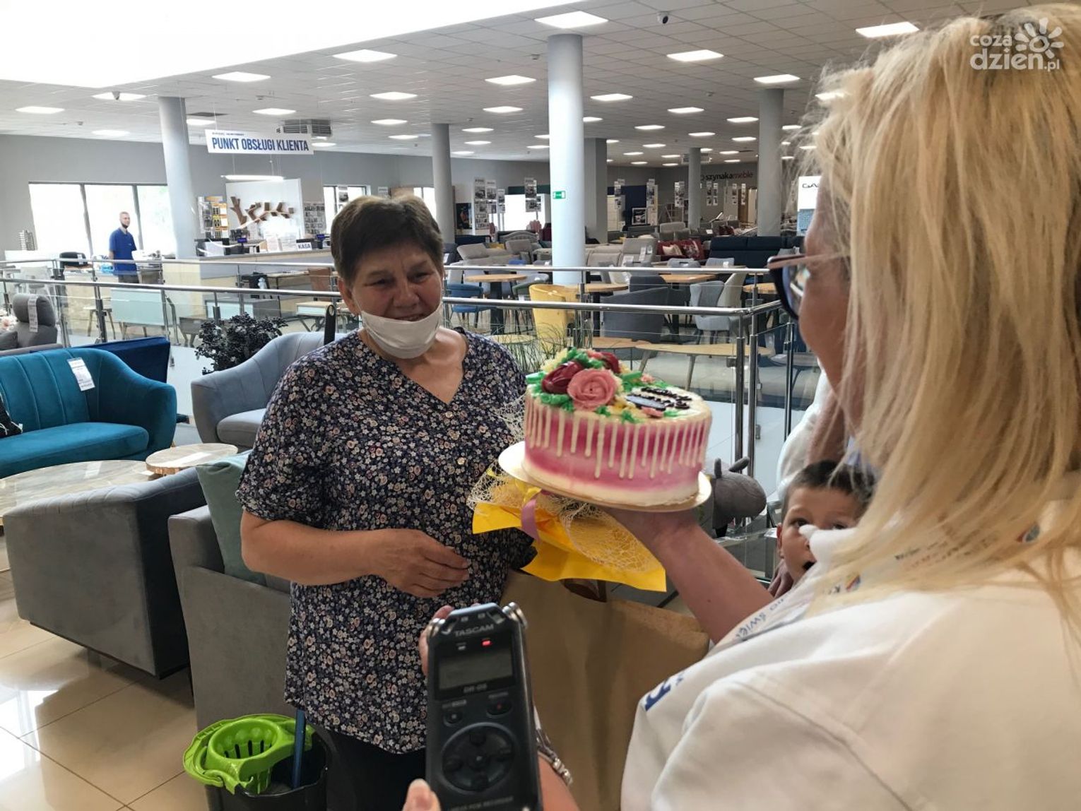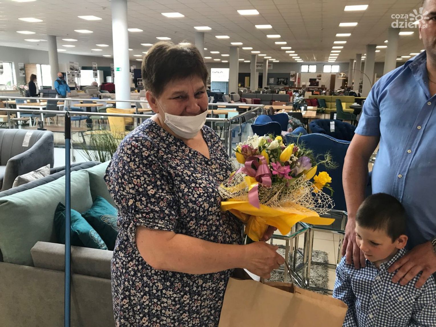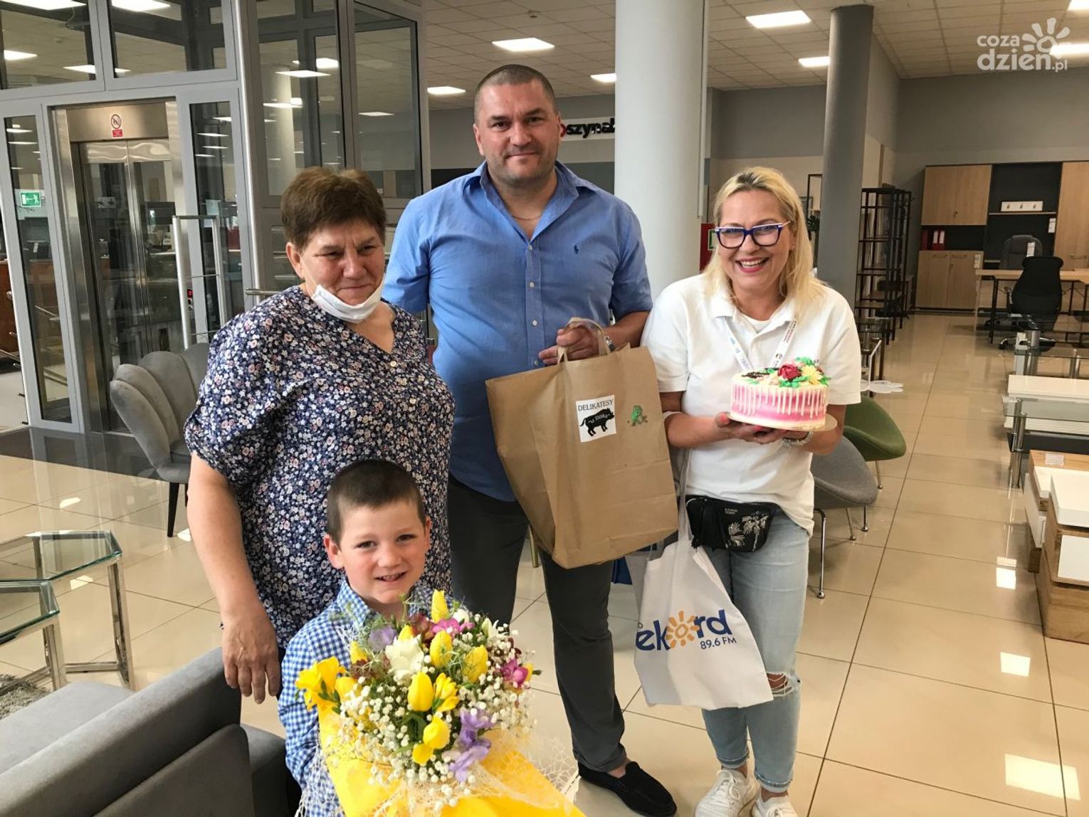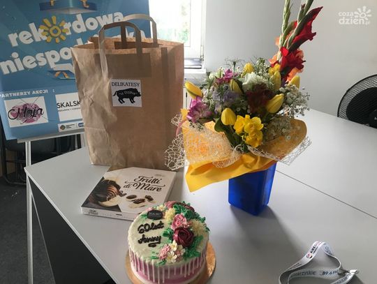 Zapracowaną i nieco zmęczoną panią Anię zaskoczyliśmy w dniu jej urodzin w pracy. Jak nam przyznała dzięki Rekordowej Niespodziance ten dzień stał się wyjątkowy i zapamięta go na długo. O prezenty zadbali nasi cudowni sponsorzy: Kwiaciarnia "Na Schodach", Delikatesy "U Dzika", Piekarnia i Cukiernia "Skalski" oraz Agencja Reklamowa "Kreograf".