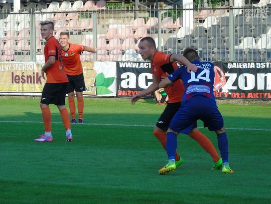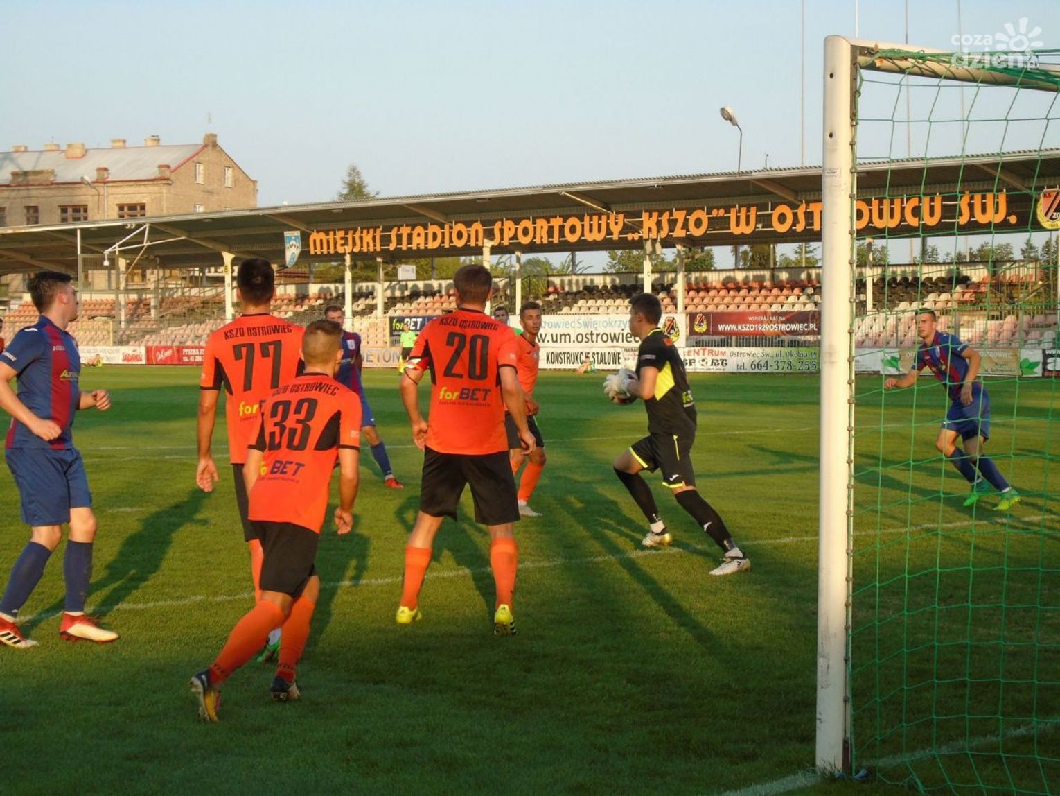 W środowym spotkaniu piątej kolejki III ligi grupy IV piłkarze KSZO 1929 OSTROWIEC ŚWIĘTOKRZYSKI oraz Spartakusa Daleszyce nie stworzyli porywającego widowiska. Przez większość meczu na boisku niewiele się działo, piłkarze KSZO trochę więcej operowali piłk,ą ale podobnie jak goście nie stwarzali klarownych sytuacji strzeleckich. Najlepsze okazje do zdobycia bramki w pierwszej połowie mieli Grunt, Smuczyński i Madej, ale na przerwę zawodnicy schodzili przy stanie zero do zera. W drugiej połowie, trener Marcin Wróbel dokonał kilku zmian - na boisku pojawili się min.: Kamil Dziadowicz, Mateusz Mąka i Piotr Jedlikowski. To właśnie ta trójka w 85 minucie stworzyła akcję, która dała trzy punkty drużynie ze Świętokrzyskiej. Prawym skrzydłem zaatakował Kamil Dziadowicz, zdołał poradzić sobie z przeciwnikami i precyzyjnie dośrodkować na głowę Mateusza Mąki. Strzał Mąki nie był dostatecznie mocny, ale piłka trafiła do będącego na piątym metrze Piotra Jedlikowskiego, którego poprawka była już skuteczna. Dla 22-letniego wychowanka KSZO była to pierwsza bramka na trzecioligowych boiskach. W końcówce piłkarze Spartakusa próbowali zmienić losy spotkania, wykorzystali to gospodarze kontrując ponownie za sprawą Kamila Dziadowicza. Wynik jednak nie uległ już zmianie.