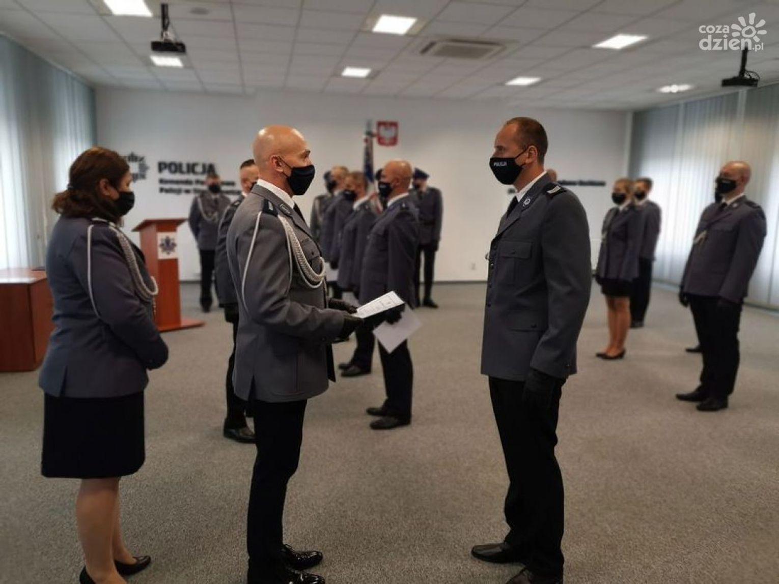 Następnie wręczone zostały rozkazy personalne o mianowaniu na wyższe stopnie służbowe. W tym roku 73 policjantów otrzymało awanse na wyższe stopnie służbowe. Awansowani policjanci reprezentowali wiele rodzajów policyjnych służb - od policjantów służby patrolowej, dzielnicowych, policjantów ruchu drogowego po policjantów służby dochodzeniowo-śledczej i kryminalnej. Każda i każdy z nich stanowi ogniwo łańcucha służącego zapewnieniu bezpieczeństwa i porządku publicznego.