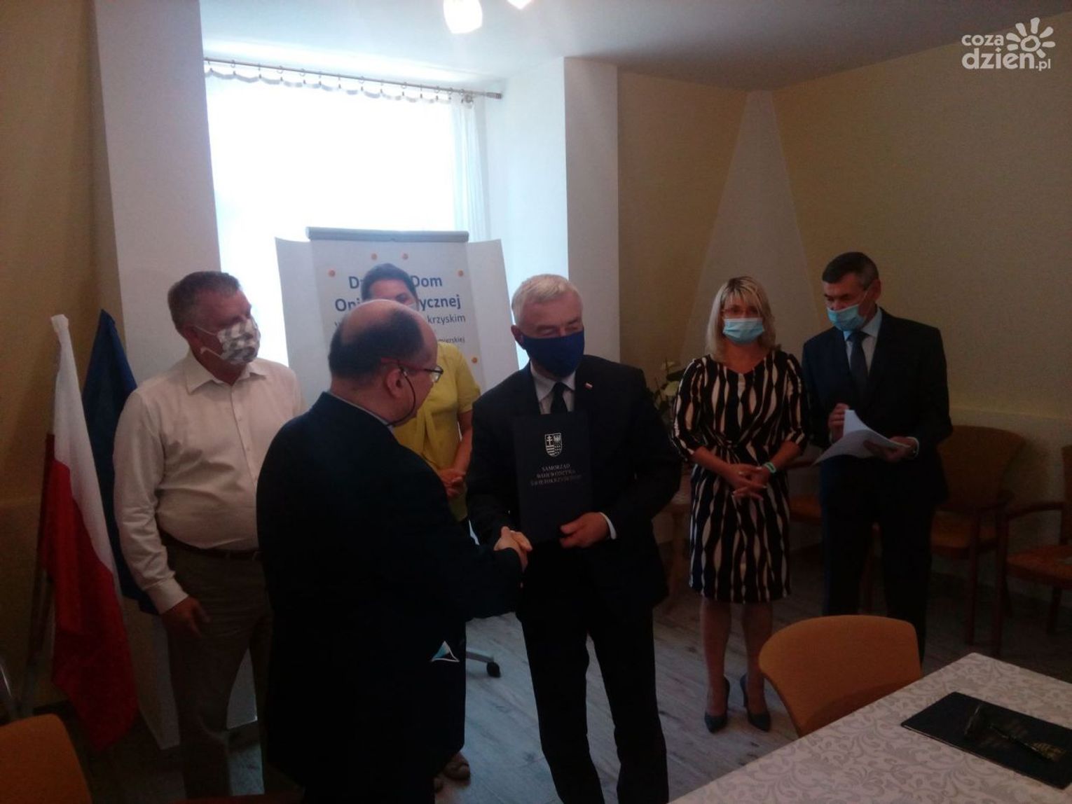 W podpisaniu dokumentu uczestniczyli również przedstawiciele Urzędu Marszałkowskiego oraz senator Jarosław Rusiecki. W ramach projektu Regionalnego Programu Operacyjnego Województwa Świętokrzyskiego na lata 2014-2020 w budynku Domu Ulgi w Cierpieniu powstanie Dzienny Dom Opieki Medycznej. W placówce będzie dostępnych 15 miejsc opieki. W trakcie trwania projektu z opieki skorzysta 85 pacjentów. Wsparcie otrzyma również 25 opiekunów osób chorych.