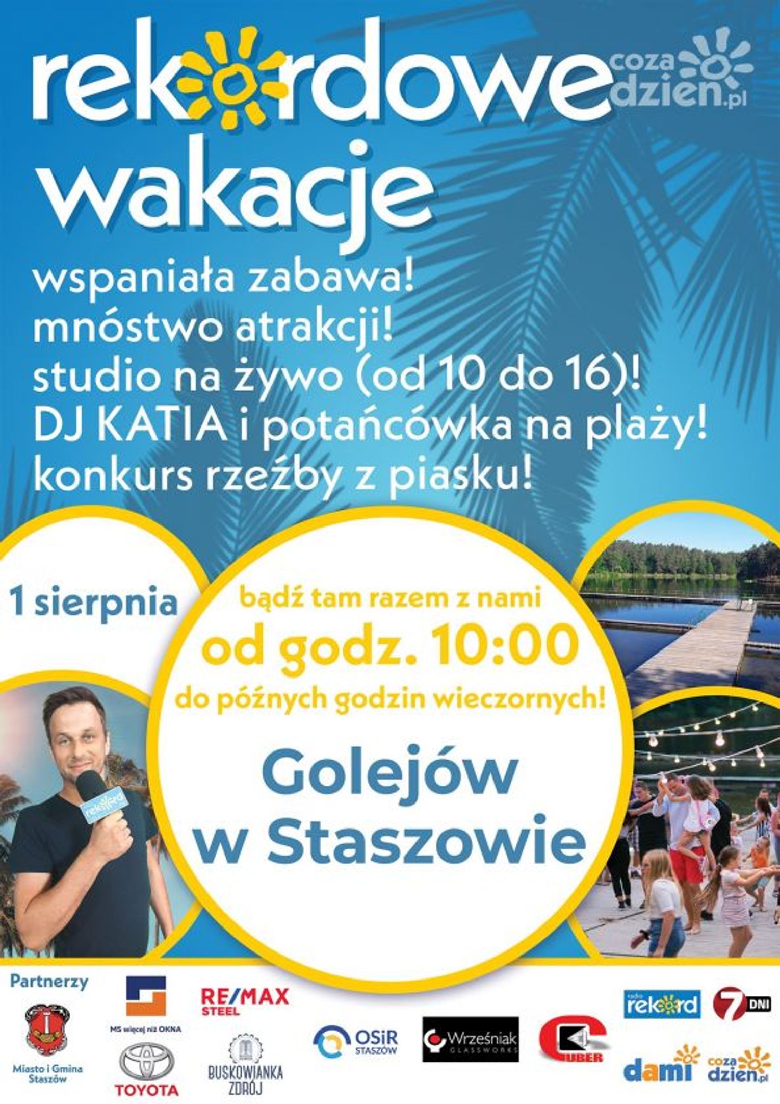 Kto w najbliższą sobotę 1 sierpnia może, ten jedzie do Golejowa. Bowiem właśnie tam kolejny przystanek Rekordowych Wakacji 2020. Przebojowa ekipa Radia Rekord zadba o wspaniałą zabawę pod wpływem której zostanie zapomniane na godzin kilka jedno słowo - nuda. Gry, konkursy, zabawa i najlepsza muzyka z rekordowego głośnika. Studio na żywo, w którym cały czas coś się dzieje, jak nie rozmowy z Gośćmi, to łączenie się z Rekordowym Rogiem Obfitości. Wśród konkursów nie lada wyzwaniem może okazać się budowanie rzeźby z piasku.