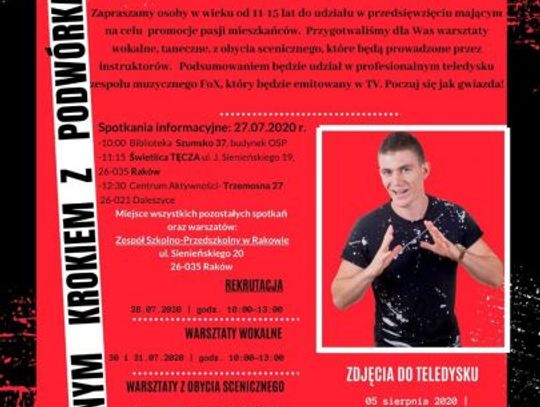 Frekwencja na zajęciach dopisała i zaowocowały one chęcią u młodych osób poszerzania wiedzy na temat tajników muzycznych. Warsztaty odbywały się do dnia 4 sierpnia w gminie Raków. Ich uwieńczeniem była realizacja teledysku zespołu Fox do piosenki "Zakochana para". Pomimo upału i wielogodzinnej pracy na planie, młodzi ludzie wykazali się pełnym zaangażowaniem, profesjonalizmem i cierpliwością.