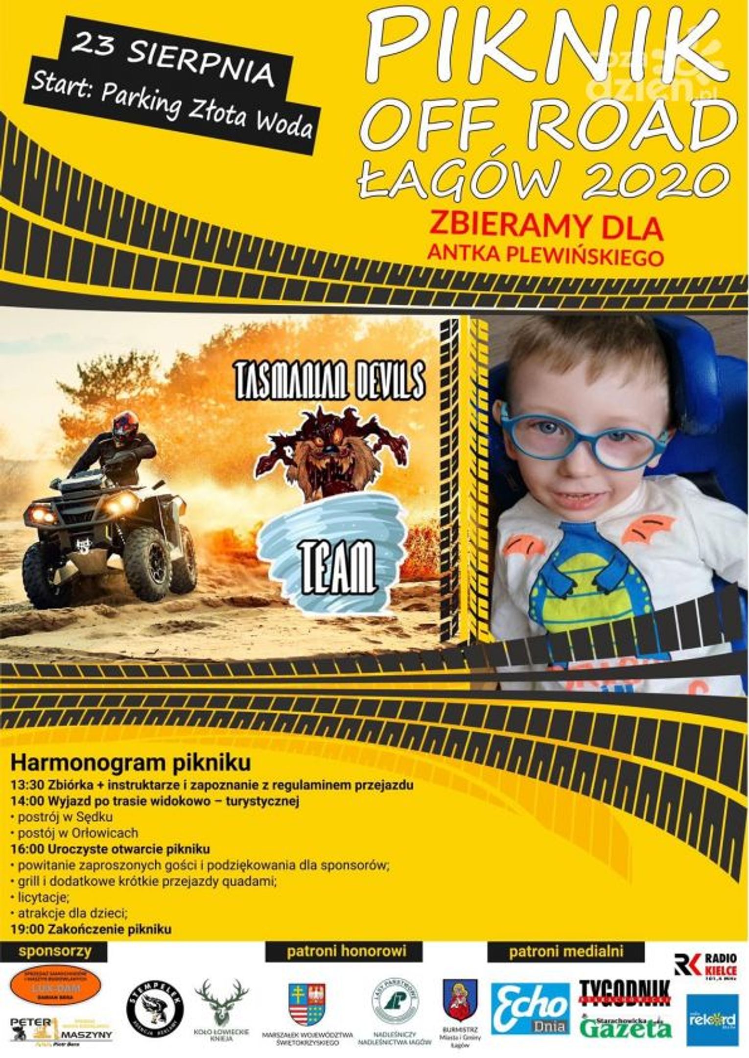 23 sierpnia na parkingu w Złotej Wodzie gm. Łagów przeprowadzony zostanie Piknik, którego celem będzie zbiórka funduszy na leczenie Antosia Plewińskiego. Początek wydarzenia o godzinie 14:00. W trakcie pikniku każdy znajdzie coś dla siebie, a jego motywem przewodnim będą... samochody! Mama Antosia i organizatorzy pikniku, czyli członkowie drużyny Tasmanian Devils w studiu lokalnym Radia Rekord 89,6 FM opowiedzieli o wydarzeniu.