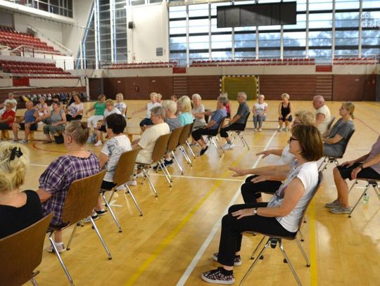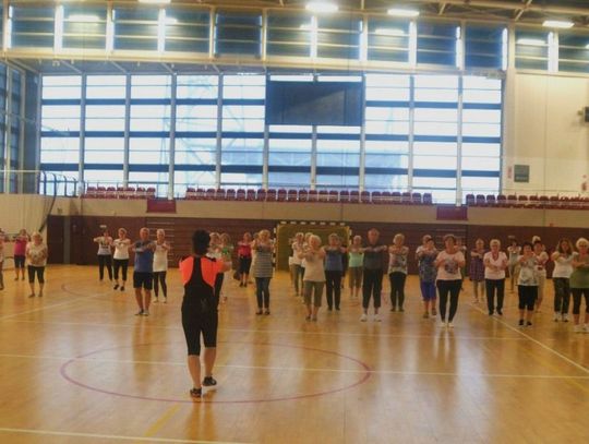 Kolejna forma zajęć spotkała się z aprobatą uczestników, którzy licznie tego dnia przybyli do hali. Z uśmiechem na twarzach uczestniczyli w zajęciach ruchowych przy muzyce. Była nie tylko gimnastyka, ale również taniec i wspólne śpiewanie.