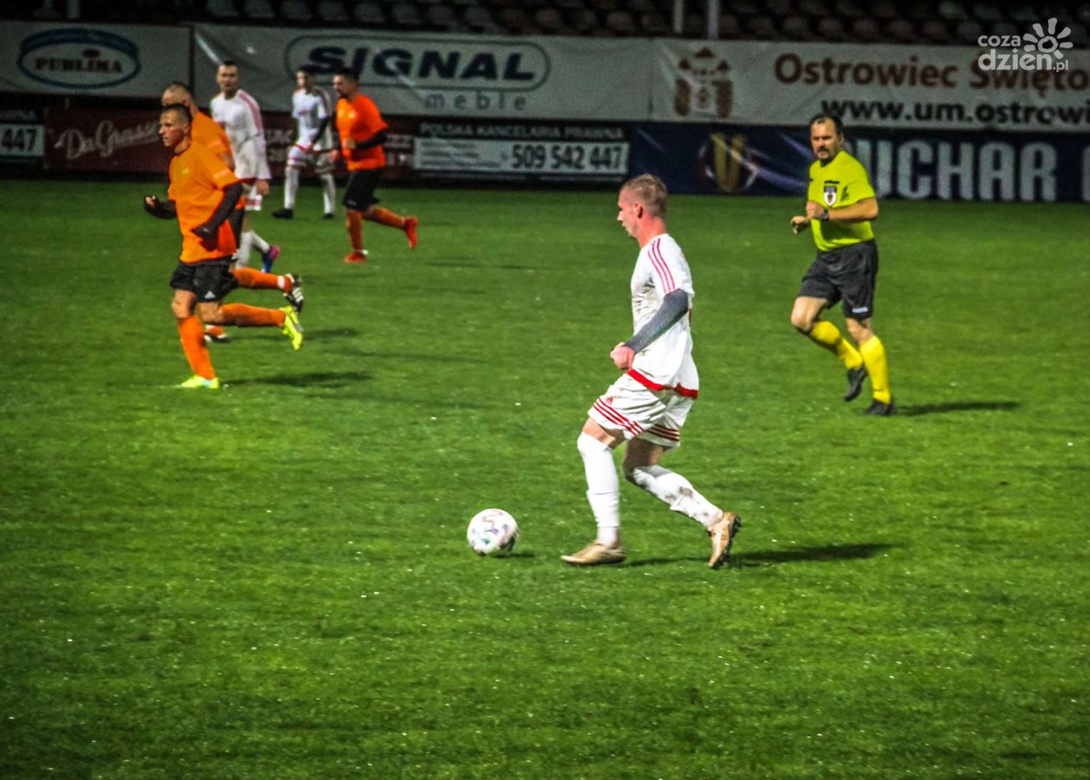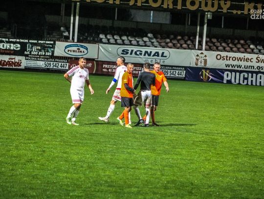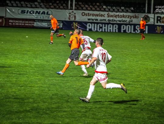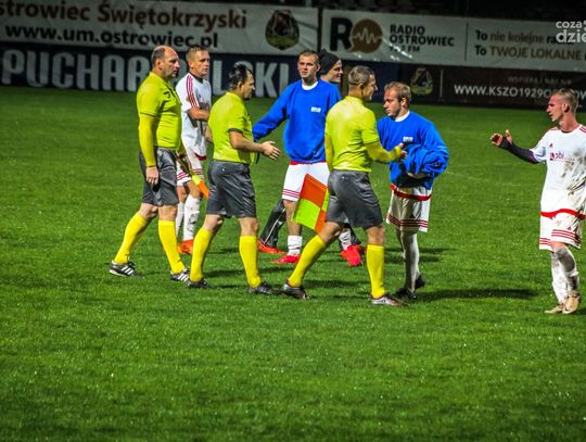Do przerwy to ostrowczanie dyktowali warunki na boisku. Po dwóch fantastycznych bramkach zespół prowadzony przez Marka Krajewskiego prowadził 2:0. Pierwszy na listę strzelców wpisał się Jarosław Mosiołek, który strzałem z ponad 30 metrów pokonał golkipera OKS-u 17-letniego Radosława Partykę. Zdecydowanie bramkę pomocnika KSZO można zaliczyć do tych z serii „stadiony świata". Kilka minut później na 2:0 również pięknym strzałem podwyższył Andrzej Kobylański. W drugiej części po reprymendzie grającego w oldbojach KSZO trenera OKS-u Dariusza Pietrasiaka goście wzięli się ostro do pracy. Szybsze tempo meczu dało rezultaty. Dwie bramki Damiana Szewczyka, jedna Sebastiana Żelaszczyka i już w ostatniej minucie bramka Michała Rutkowskiego dała piłkarzom OKS-u Opatów wygraną i awans do kolejnej rundy Okręgowego Pucharu Polski.