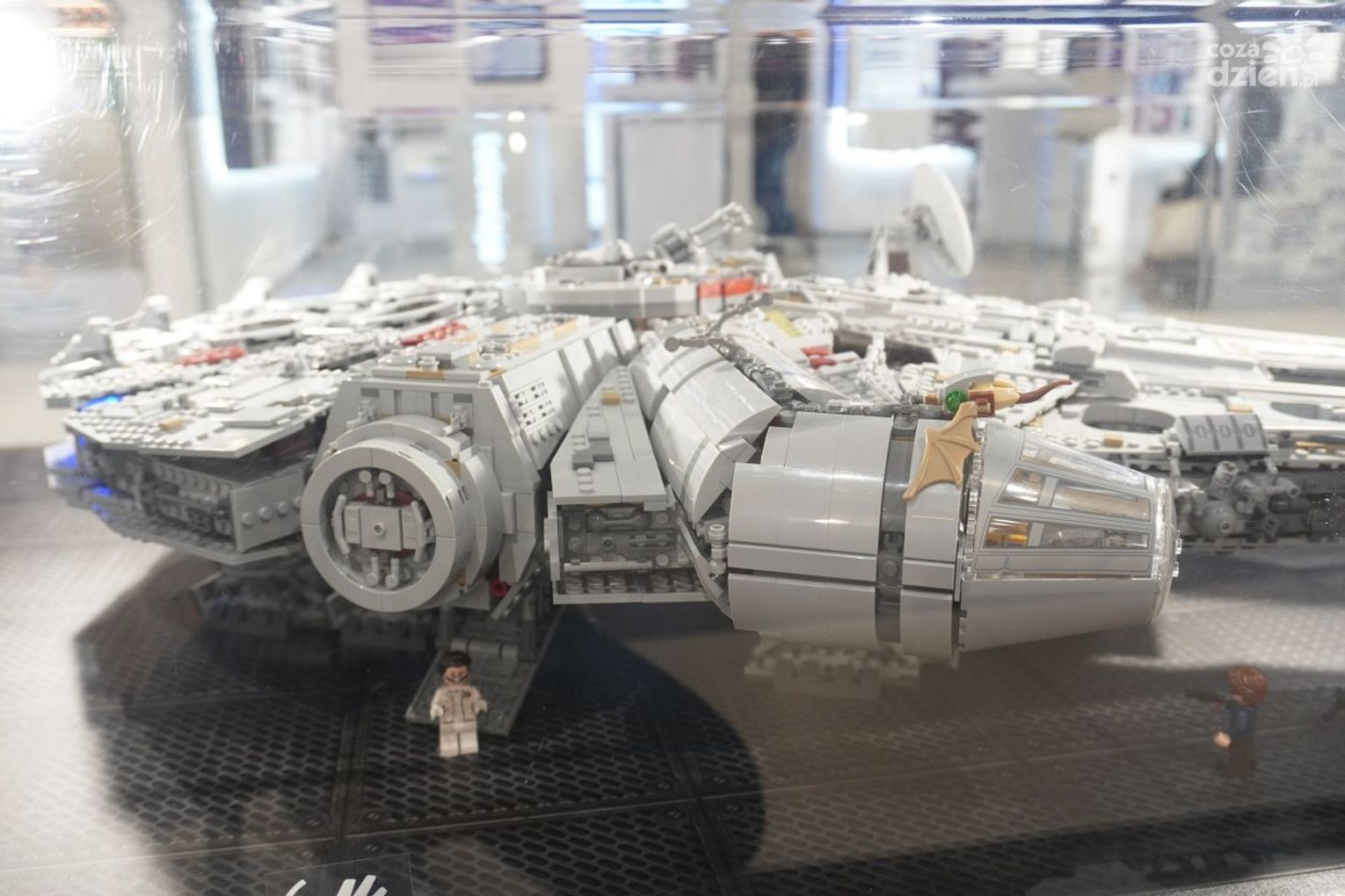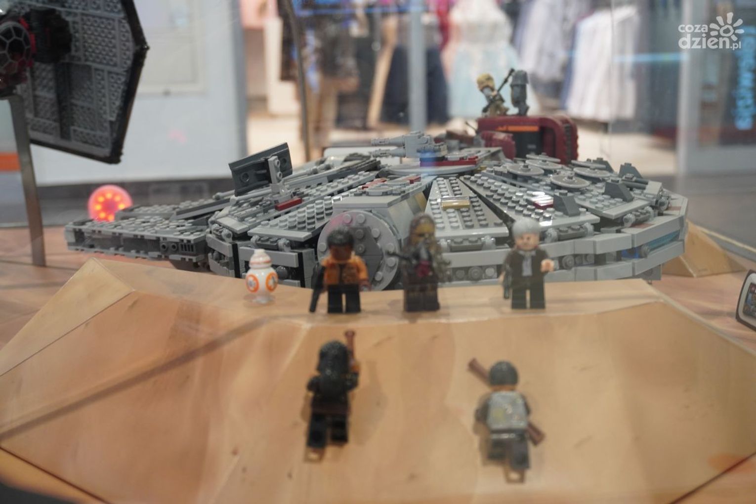 W gablotach widnieją zestawy kolekcjonerskie LEGO® m.in. Sokoła Millennium, czyli największy oficjalny zestaw LEGO® w historii, a także inne modele statków kosmicznych i pojazdów oraz figury bohaterów LEGO® Star Wars™.