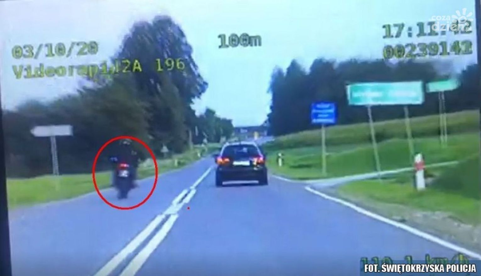 Wyprzedzanie na podwójnej ciągłej, blisko 180 km/h w miejscu, gdzie prędkość jest ograniczona do 90, wyprzedzanie na skrzyżowaniu z przejściami dla pieszych - te i wiele innych wykroczeń popełnił kierowca motocykla suzuki, uciekając przed stróżami prawa. Niebezpieczny rajd dla 30-latka z gminy Bodzechów skończy się przed sądem. Grozi mu do pięciu lat pozbawienia wolności.