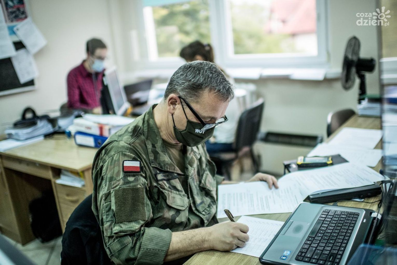 Żołnierze Wojsk Obrony Terytorialnej w czasie pandemii wspierają służby medyczne na wielu płaszczyznach. Najbardziej widoczni są w szpitalach i przychodniach, gdzie między innymi mierzą temperaturę. Jednak, aby cały system opieki w czasach pandemii mógł sprawnie funkcjonować, potrzebny jest ogrom pracy administracyjno-biurowej, którą wykonują Stacje Sanitarno-Epidemiologiczne. W związku z tym dowódca 10. Świętokrzyskiej Brygady Obrony Terytorialnej podjął decyzję o wzmocnieniu wsparcia dla sanepidu w regionie. Obecnie blisko 30 żołnierzy pomaga w pięciu stacjach - w Kielcach, Busku-Zdroju, Starachowicach, Ostrowcu Świętokrzyskim i w Jędrzejowie.