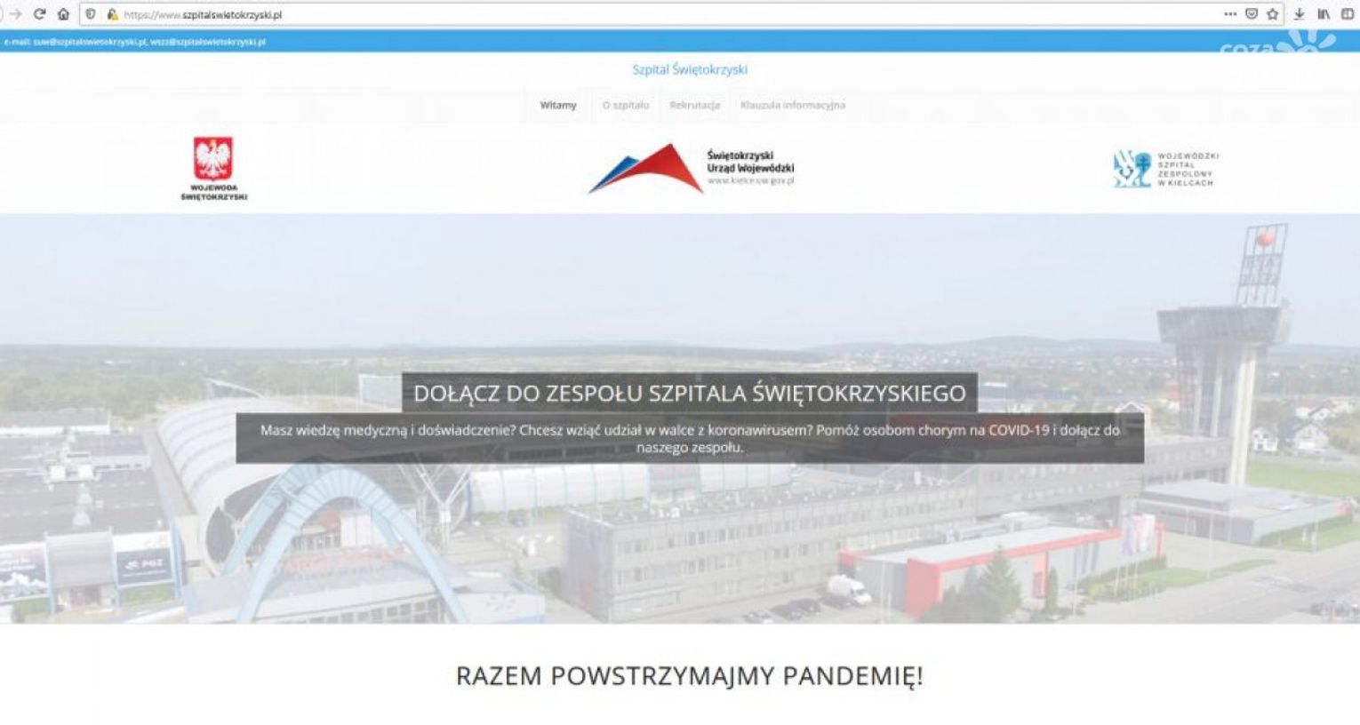 Siedzibą szpitala tymczasowego dla chorych na Covid-19 w województwie świętokrzyskim są Targi Kielce. Dla pacjentów przygotowano 300 miejsc, w tym około 50 respiratorowych, przeznaczonych dla pacjentów z ciężkim przebiegiem choroby. Docelowo Targi Kielce dysponują infrastrukturą, która pozwala na przygotowanie około 1000 miejsc dla pacjentów. Tuż przy szpitalu tymczasowym utworzono „hotel dla medyka”, z którego może korzystać personel szpitala.