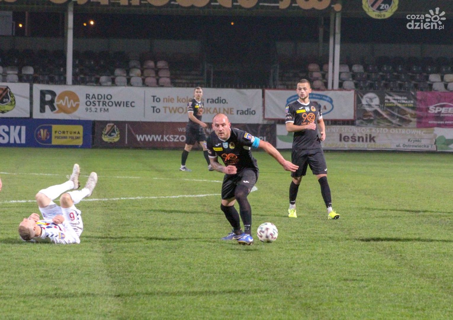 W drugiej połowie zespół Marcina Brosza podkręcił tempo gry. Ataki były szybsze i groźniejsze. W bramce hutników świetnie spisywał się jednak Lipiec. W 53 minucie jeden z takich ataków powstrzymał Przemysław Dwórzyński, niestety interwencja naszego obrońcy polegała na zatrzymaniu za koszulkę przeciwnika wychodzącego na czystą pozycję. Efekt był taki, że Dwórzyński musiał po czerwonej kartce opuścić boisko i gospodarze grali od tej pory w dziesięcioosobowym składzie. Pomimo osłabienia ostrowczanie zaczęli grać bardziej ofensywnie. Aktywni z przodu Trochim, Chrzanowski i Stanisławski nieźle radzili sobie z przeciwnikami, którzy często musieli pomagać sobie nieprzepisowymi zagraniami. Właśnie w 62 minucie hutnicy po faulu na Chrzanowskim egzekwowali rzut wolny z lewej strony boiska. Nasz specjalista od tego elementu gry Marcin Kaczmarek tak precyzyjnie dograł na głowę najwyżej wyskakującego w polu karnym Konrada Zakliki, że ponownie zespół KSZO cieszył się z prowadzenia. W szeregi drużyny przyjezdnej wkradła się spora nerwowość, trener Brosz dokonał kilku zmian w kadrze, wynik 2:1 pomimo osłabienia w KSZO utrzymywał się jednak długo. W 85 minucie dużą szansę na podwyższenie prowadzenia zmarnował Szymon Stanisławski. Piłkę dograną z rogu przez Marcina Kaczmarka przedłużył głową Damian Mężyk, Stanisławski odwrócony od bramki rywali próbował trafić piłkę efektowną przewrotką, niestety bezskutecznie. Chwilę później trener Krawiec zdecydował się na podwójną zmianę, zmęczonego trudami spotkania Trochima zamienił Mąka, a kolejnego strzelca bramki Konrada Zaklikę zamienił Imiołek. Zmiany nie dały oczekiwanego rezultatu, goście rozgrywali piłkę w naszym polu karnym, jednak nie potrafili pokonać Lipca, strzały były albo niecelne, albo blokowane przez obrońców KSZO. W 88 minucie kapitan Górnika Michał Koj zdecydował się na strzał z kilkunastu metrów, strzał był niecelny i wydawało się, że to było już wszystko, na co było stać tego dnia drużynę grającą na co dzień trzy poziomy rozgrywkowe wyżej. Niestety tak nie było, w 90 minucie do wyrównania doprowadził Przemysław Wiśniewski, a chwilę po tym, jak sędzia Karol Iwanowicz z Lublina doliczył pięć minut, na uderzenie z dystansu zdecydował się Gambijczyk Alasana Manneh. Paweł Lipiec był bez szans, zabrzanie przysłowiowym rzutem na taśmę pokonali dobrze grający tego dnia zespół KSZO i awansowali do kolejnej fazy Fortuna Pucharu Polski. Tym razem niespodzianki na stadionie przy Świętokrzyskiej nie było, choć do tego brakło tylko kilku minut.