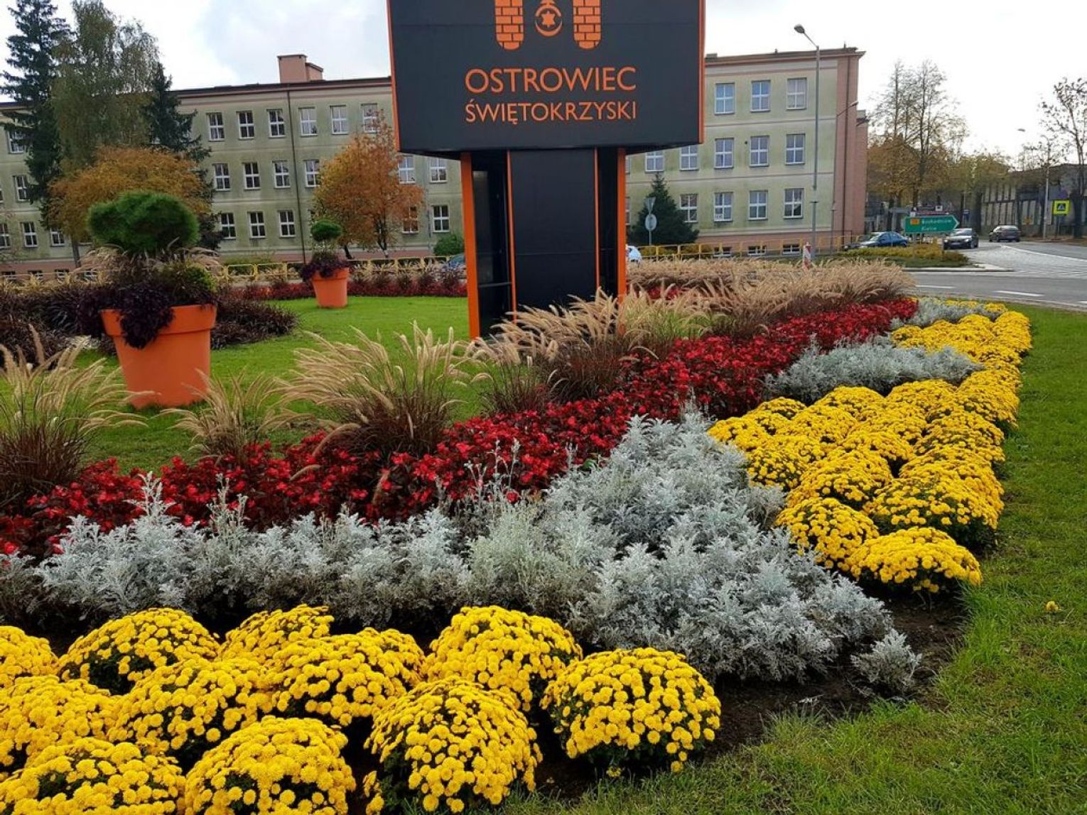 Chryzantemy, zakupione od lokalnych producentów zdobią również ronda w Starachowicach.