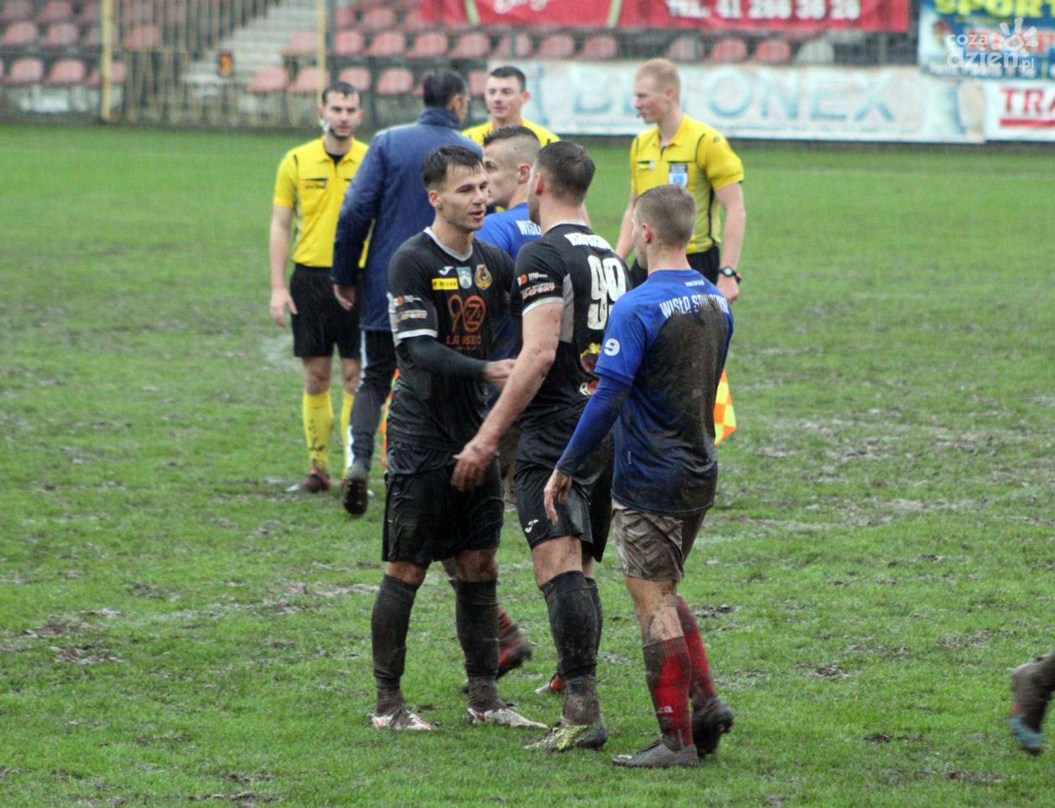 W bardzo trudnych warunkach przypadło dziś grać piłkarzom KSZO Ostrowiec i Wisły Sandomierz. Wprawdzie wyżej notowani goście starali się więcej rozgrywać piłkę, jednak nie udało im się uchronić od kontrataków KSZO. Pomarańczowo - czarni pierwszą bramkę zdobyli w 29 minucie, kiedy to Jakub Chrzanowski dobił piłkę do bramki Wisły po strzale Szymona Stanisławskiego. Sandomierzanie próbowali odrabiać straty, jednak to miejscowi zdobyli kolejną bramkę. Wojciech Trochim zagrał do Szymona Stanisławskiego, a ten wślizgiem wpakował piłkę do bramki strzeżonej przez Adama Polita. Po okresie ataków Wisły piłka ponownie powróciła w pole karne gości i w 84 minucie ostrowczanie zdobyli trzecią bramkę. W podbramkowym zamieszaniu najlepiej zachował się Przemysław Dwórzyński i strzałem z kilkunastu metrów po raz trzeci tego dnia pokonał Polita. Grający do końca podopieczni Rafała Wójcika honorową bramkę zdobyli w 87 minucie, dobrze spisującego się dziś w bramce KSZO Karola Szymkowiaka pokonał Krzysztof Zawiślak.