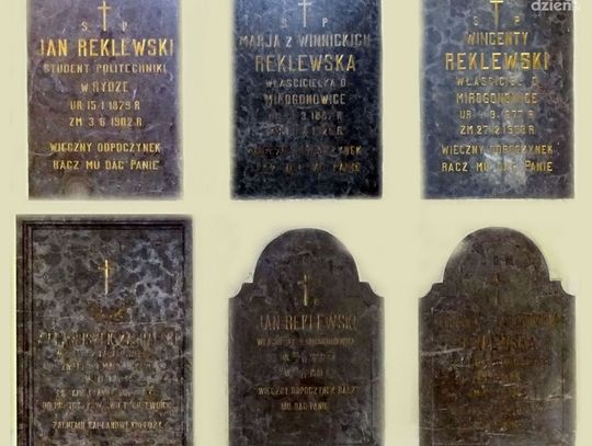 Ks. bp Jan Kanty Lorek, biorąc pod uwagę życie i okoliczności śmierci Reklewskiego, oczywiście zezwolił na umieszczenie ku jego czci pamiątkowej tablicy w kościele. Wkrótce została ona wmurowana na bocznej ścianie świątyni, gdzie znajduje się do dziś. Ale to nie jedyny obiekt przypominający bohaterskiego dziedzica.