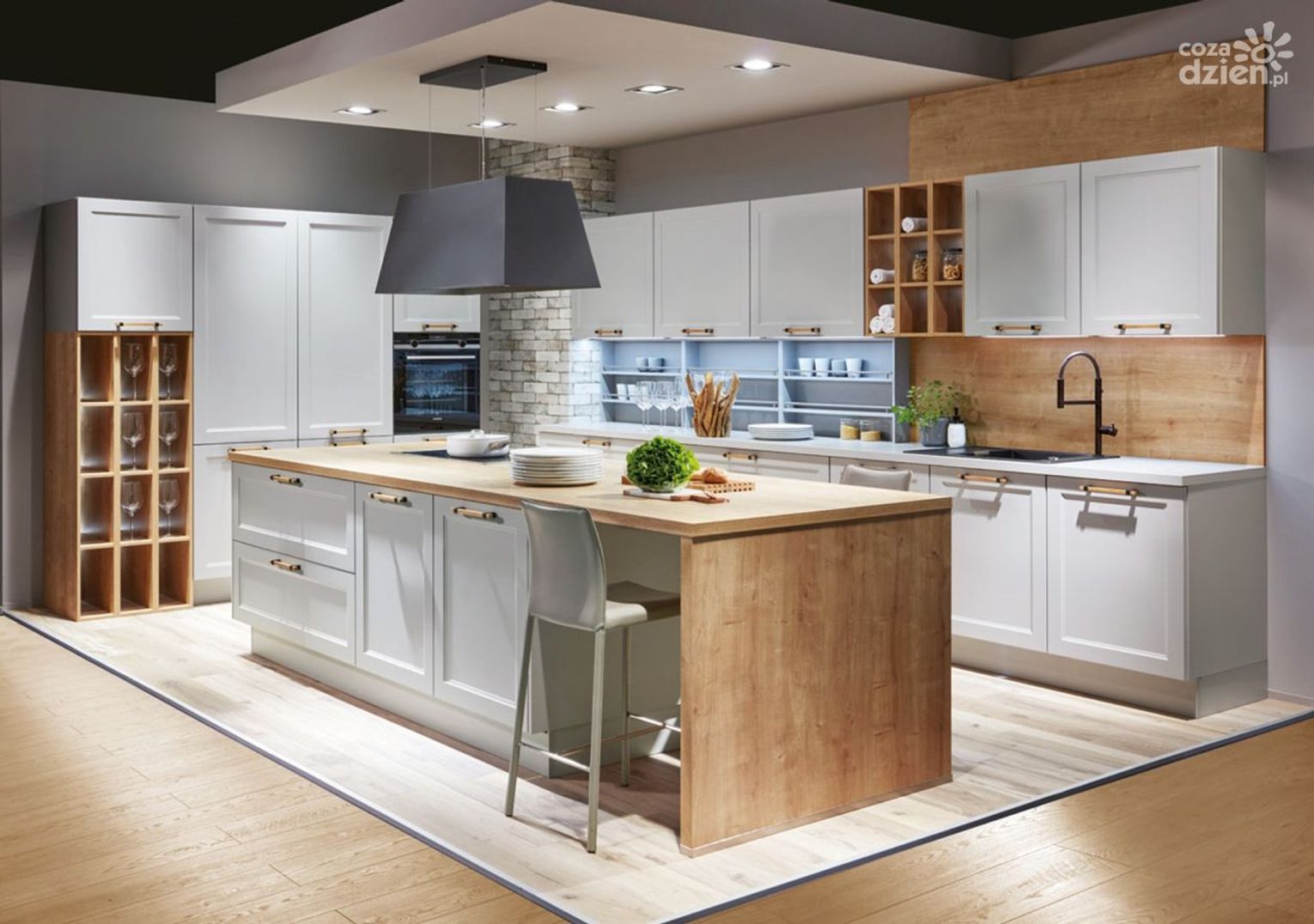 Białe meble i blat o naturalnym odcieniu drewna to popularne połączenie, które jeszcze długo nie wyjdzie z trendów. Jest ponadczasowe i eleganckie, dlatego tak często się na nie decydujemy. Jednak białe szafki możemy przykryć także blatem z granitu czy marmuru. Czarny blat będzie pięknie kontrastować z białą zabudową, ale i biały blat marmurowy z charakterystycznym deseniem będzie prezentować się równie zjawiskowo.