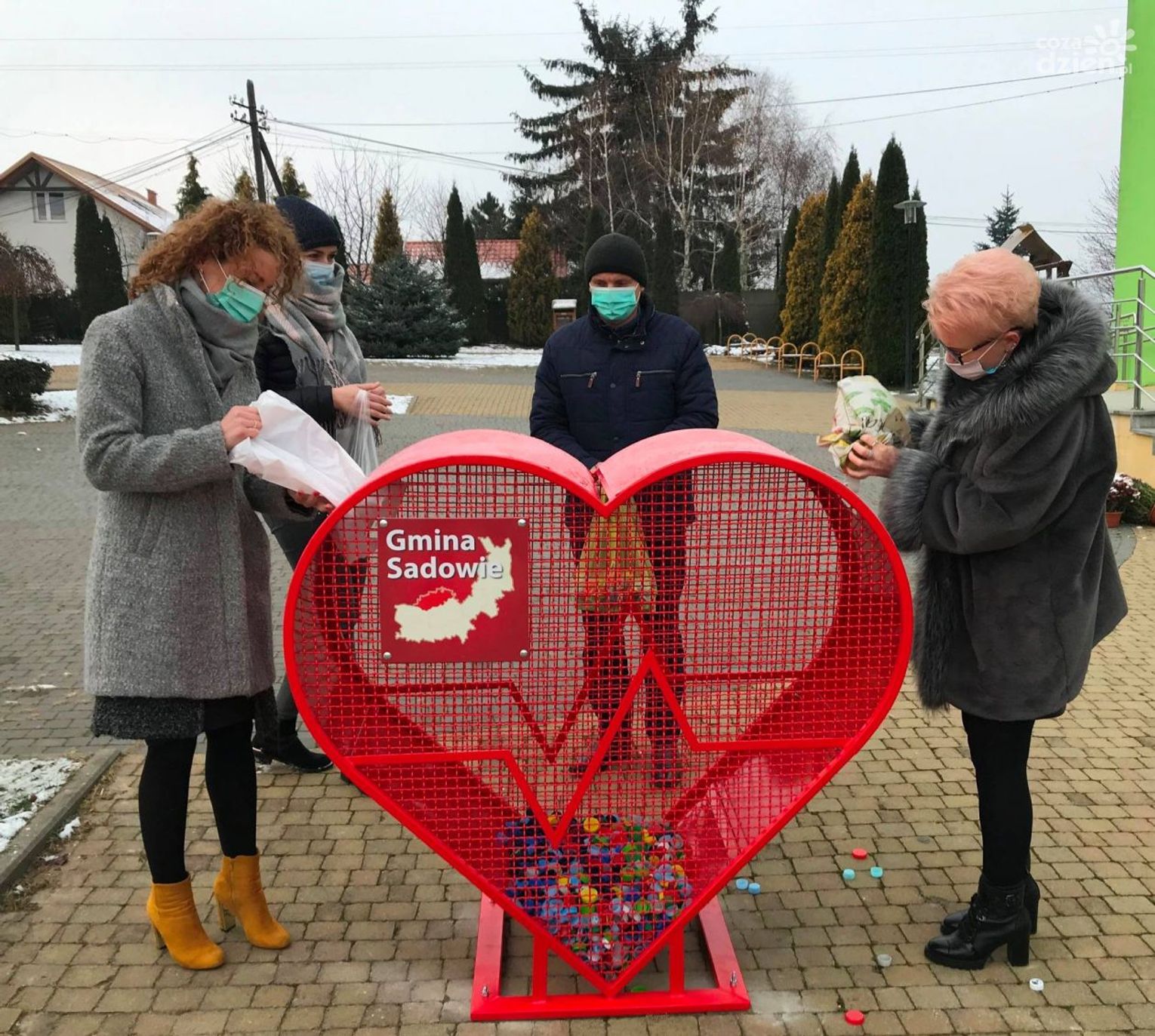 Pierwsze nakrętki wsypały dziewczynki - Jagódka i Julcia. Do zbiórki dołączyli się również pracownicy Urzędu Gminy Sadowie na czele z wójt Marzeną Urban-Żelazowską.