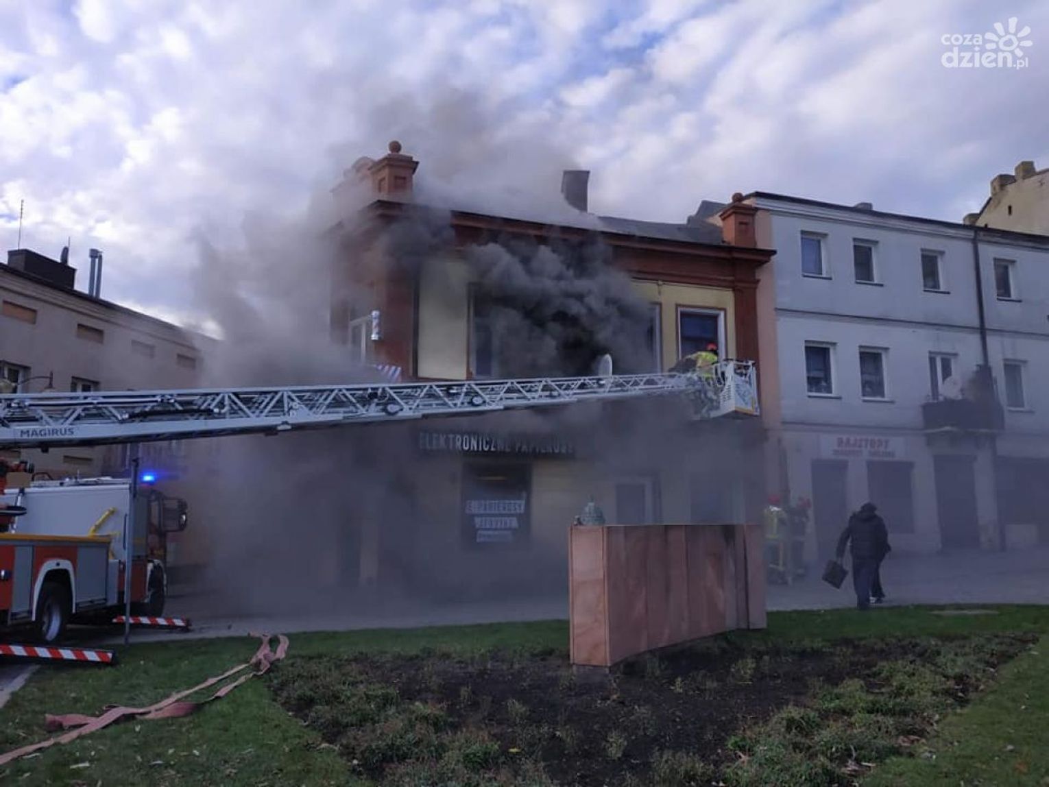 - Po przybyciu na miejsce zdarzenia okazało się, że pożarem objęta jest pierwsza kondygnacja budynku mieszkalnego, wielorodzinnego. Natychmiastowej ewakuacji wymagała jedna osoba, która znajdowała się na balkonie. Strażacy bezpiecznie ją ewakuowali przy użyciu drabiny mechanicznej. Akcja jest dość skomplikowana, ponieważ strażacy mają do czynienia z pożarem drewnianych stropów, na których ogień szybko się rozprzestrzenia. W akcji zostaną użyte kamery termowizyjne aby dokładnie sprawdzić stropy budynku, czy nie pojawia się ogień w innych miejscach. Działania w miejscu zdarzenia z pewnością potrwają do godzin wieczornych. - informuje oficer prasowy Barbara Majdak.