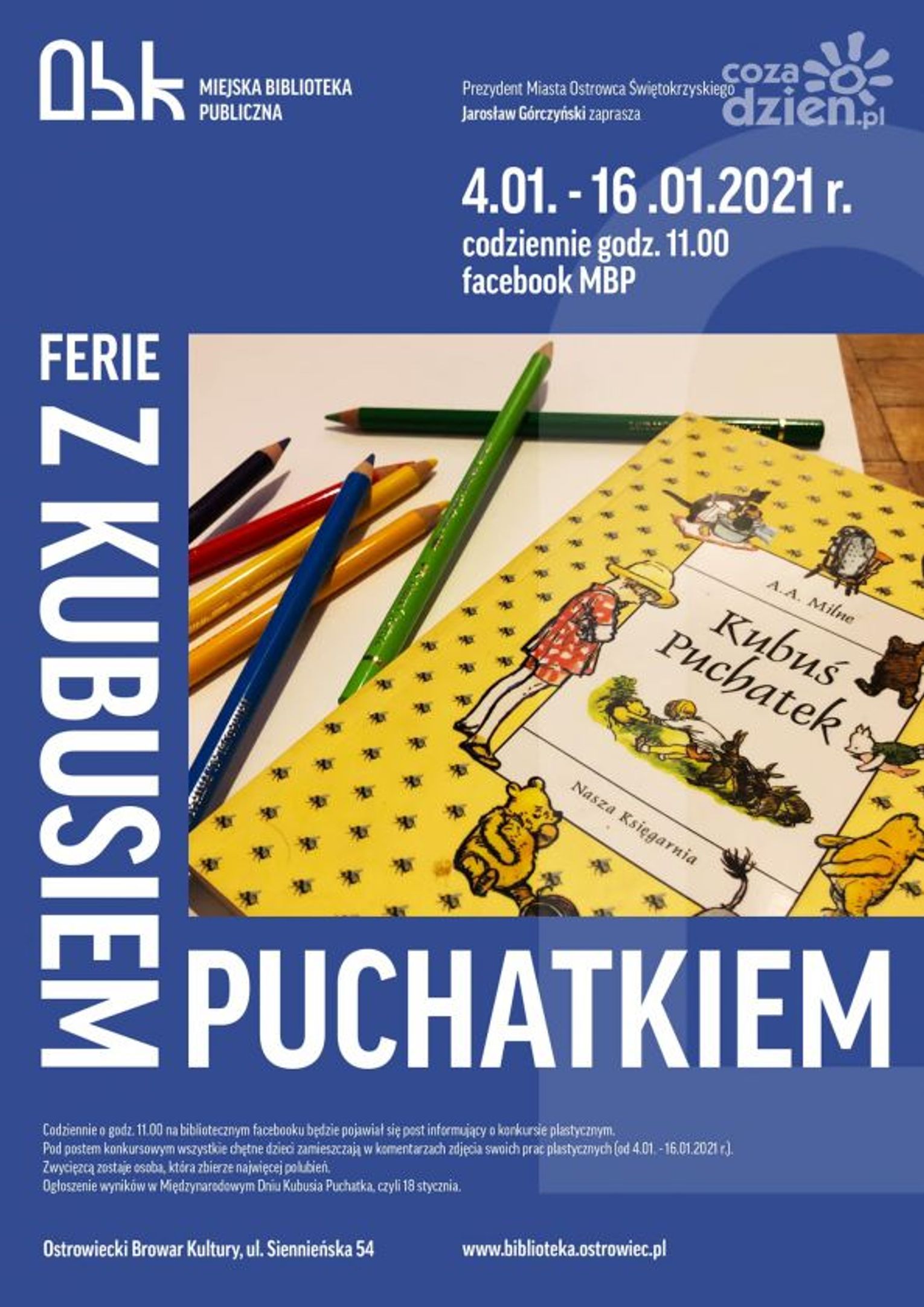 Miejska Biblioteka Publiczna w Ostrowcu Świętokrzyskim zaprasza dzieci do udziału w konkursie z okazji Międzynarodowego Dnia Kubusia Puchatka i jego 95 rocznicy urodzin.