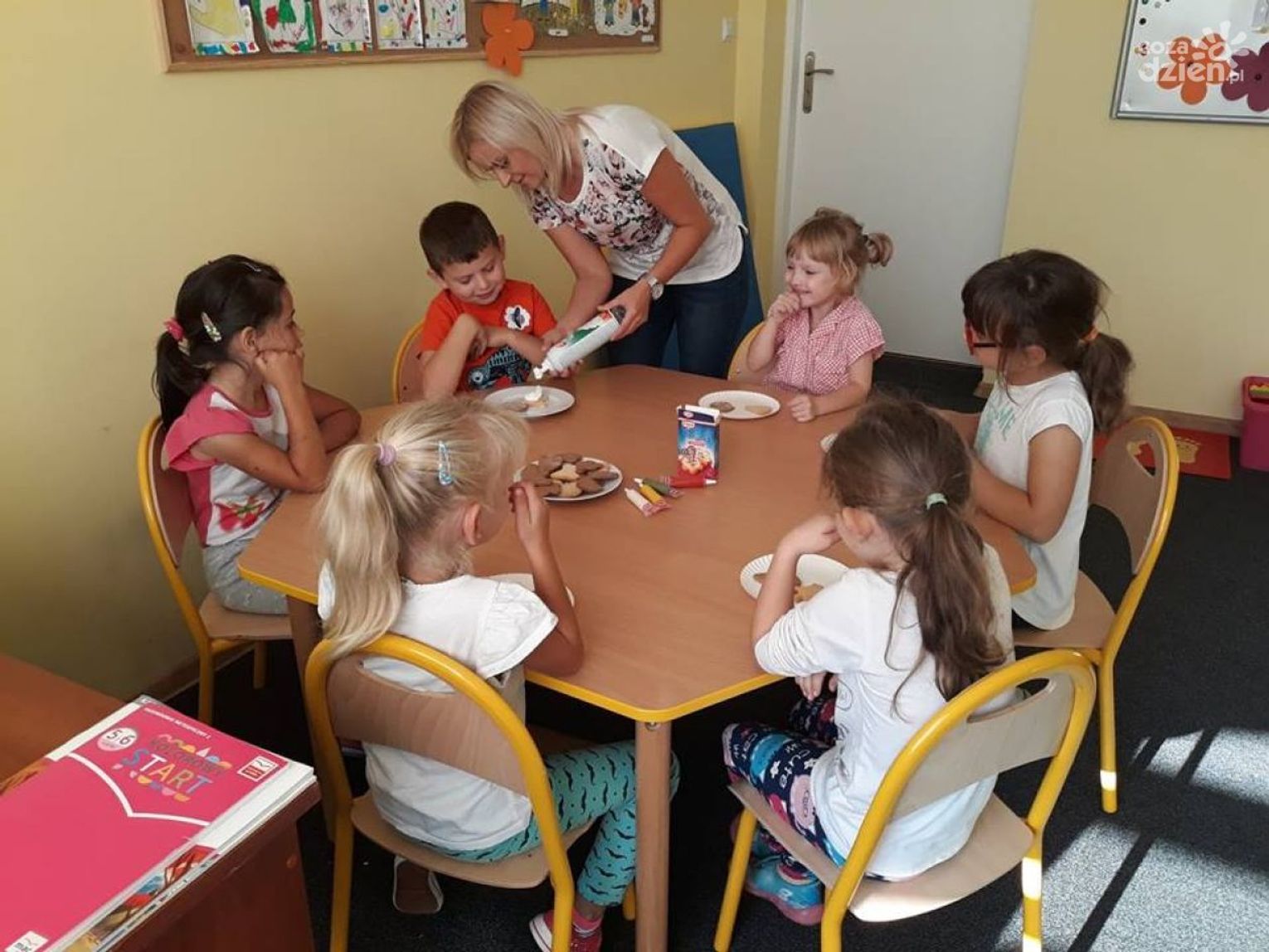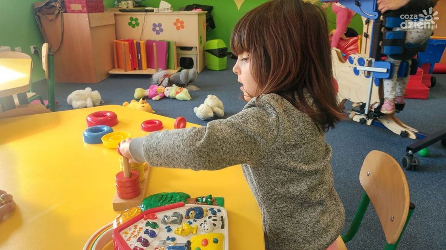 Wtedy widzę, jak podjeżdżają busy, bo nasze dzieciaki już od 7 rano zaczynają edukację, przyjeżdżają, przebierają się i idą na stołówkę. Wtedy mają pierwszy posiłek, czyli śniadanie, spożywają leki, które u nas pobierają i idą na zajęcia. Mówię idą, ale oczywiście idą pod nadzorem nauczycieli i opiekunów. W naszym przedszkolu grupy są bardzo małe, bo 2-5 osobowe. W każdej grupie jest nauczyciel i pomoc nauczyciela, zarówno nauczyciele, jak i pomoc nauczyciela są to osoby z pełnymi kwalifikacjami, także na jednego nauczyciela przypada dwoje dzieci w tej chwili. W tych naszych realiach opieka jest naprawdę bardzo dobra.