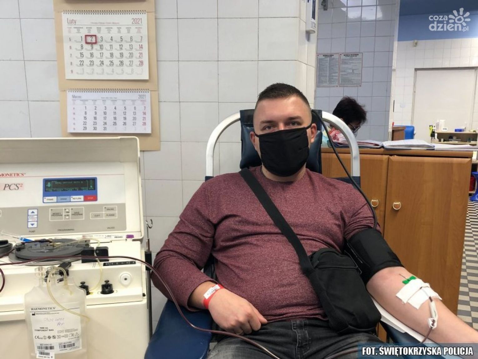 Terapia przeciwciałami, które znajdują się w surowicy krwi osób po przebytej chorobie COVID-19 to jedna z najskuteczniejszych metod leczenia ciężkich przypadków zakażenia. Dlatego niezwykle ważne jest, aby ozdrowieńcy dzielili się swoim osoczem. Doskonale wie o tym mł. asp. Mateusz Papaj z KPP w Opatowie. Dzielnicowy pokonał koronawirusa i już trzy razy oddał osocze.