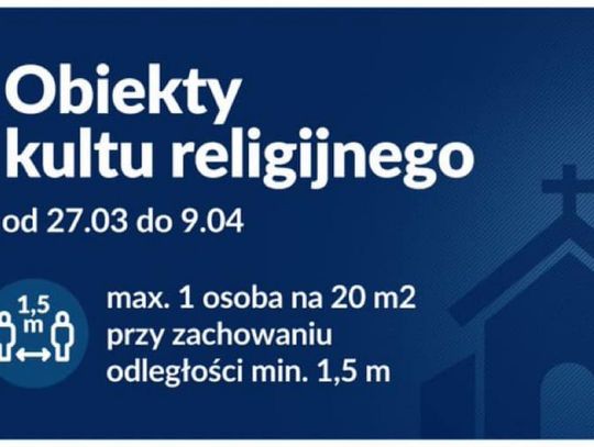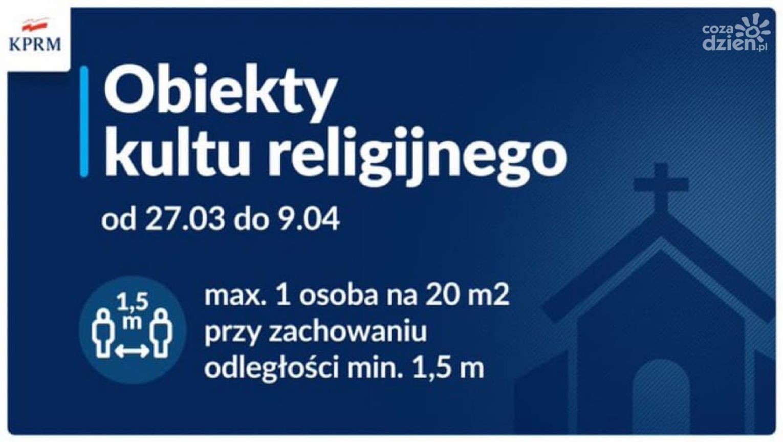 Wprowadzone zostaną ograniczenia w obiektach kultu religijnego - w kościołach maksymalnie 1 osoba na 20 m2 przy zachowaniu odległości min. 1,5 metra.