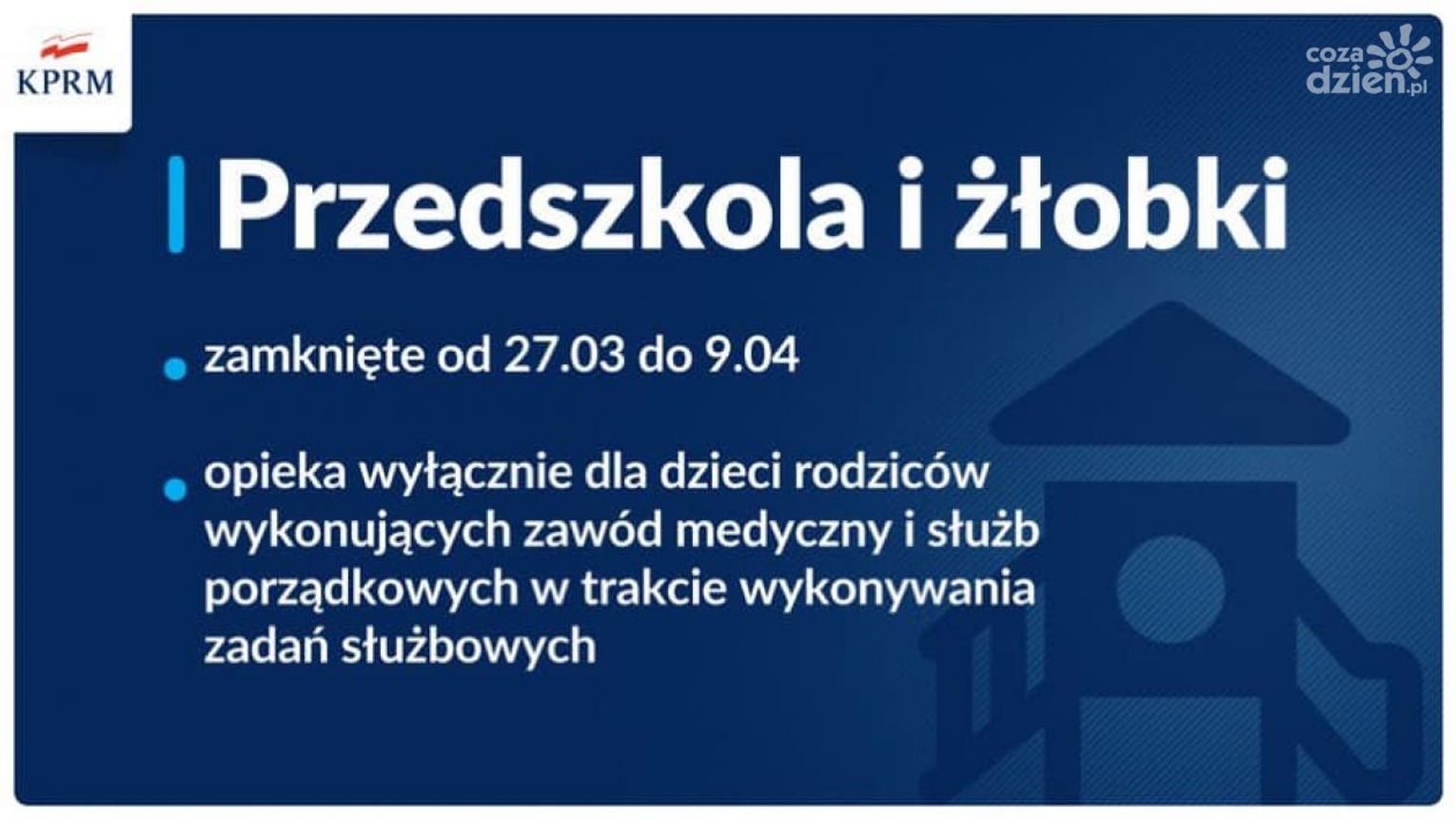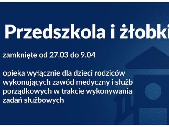 Zamknięte będą przedszkola i żłobki (opieka tylko dla rodziców wykonujących zawód medyczny i służb porządkowych).