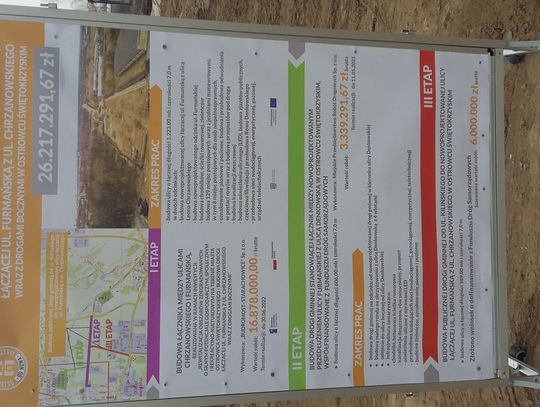 Budowa Publicznej Drogi Gminnej Klasy L która połączy ulice Furmańską z Chrzanowskiego została podzielona na 3 etapy. Koszt całej inwestycji to ponad 26 mln 217 tys. zł.